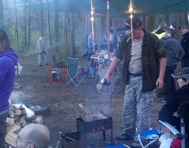 Нашёл в багажнике складной стульчик со стальными ножками и брезентовой сидушкой.