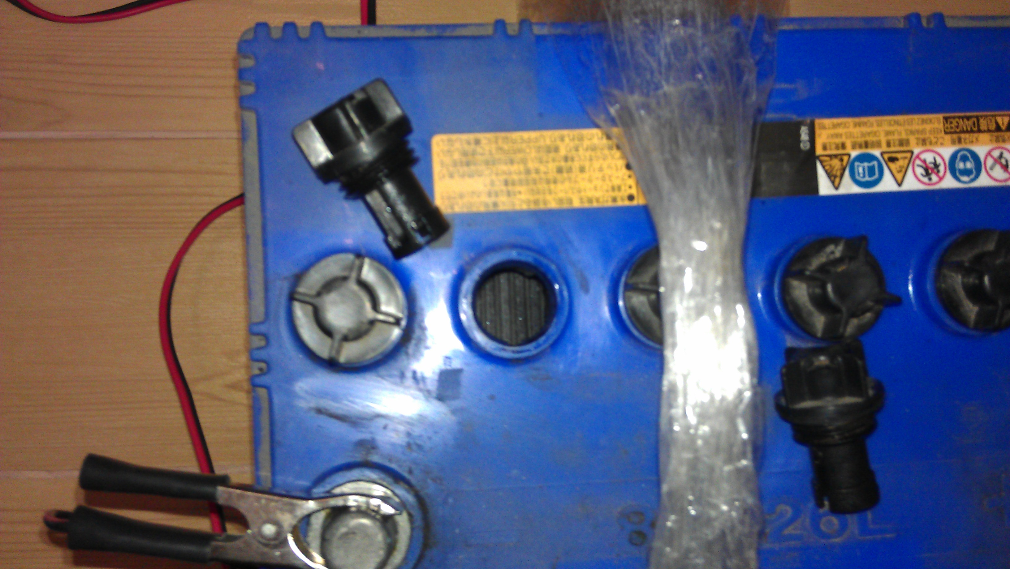Зачистил деревяшками (обычные палочки для суши) клеммы — старый дедовский способ очистки клемм от окиси. Можно еще покипятить в содовом растворе, но это уж совсем древний вариант))). Если зачищать клеммы наждачкой, но на мягком свинце остаются частицы образива от наждачки и ухудшают контакт.