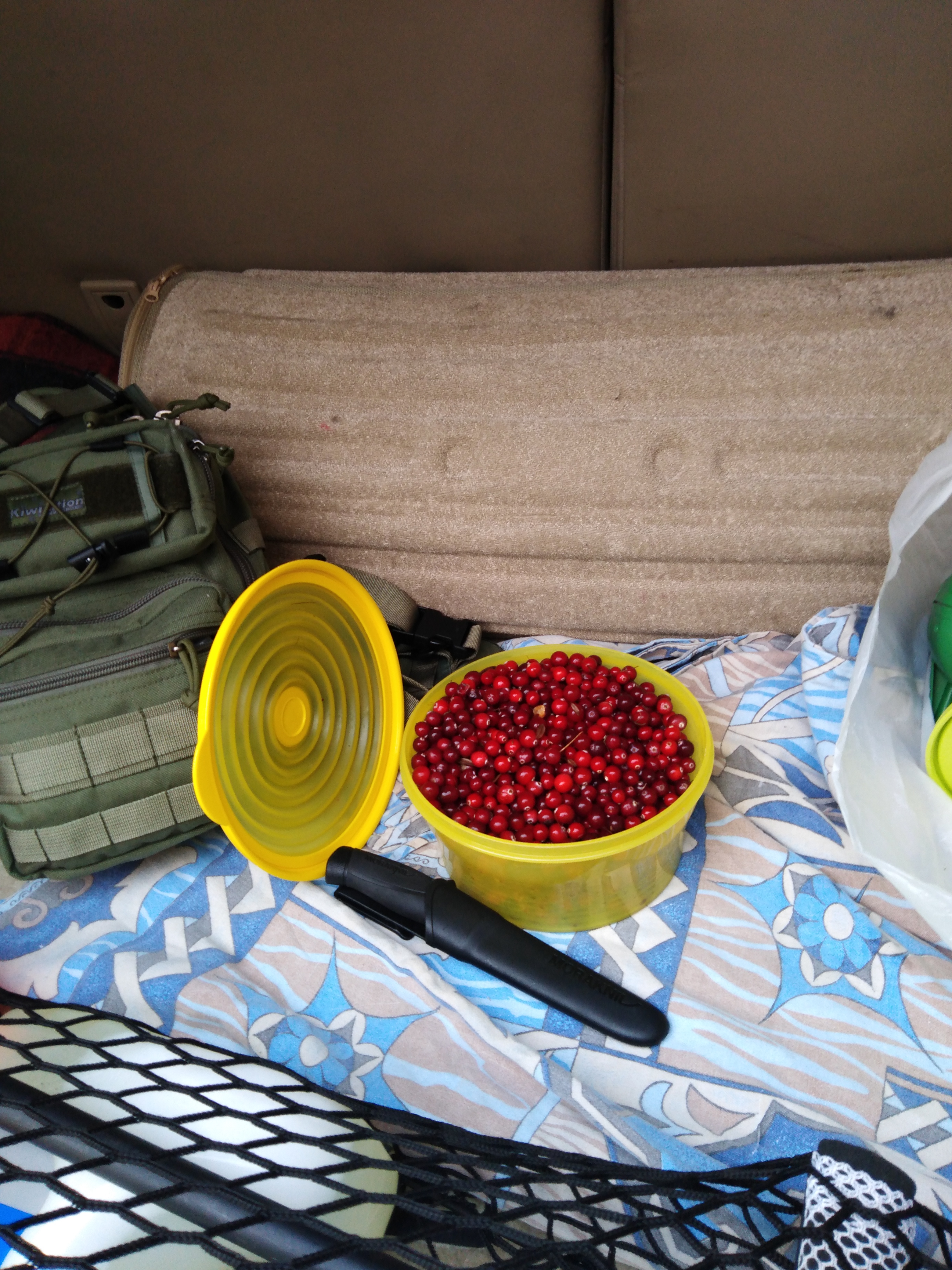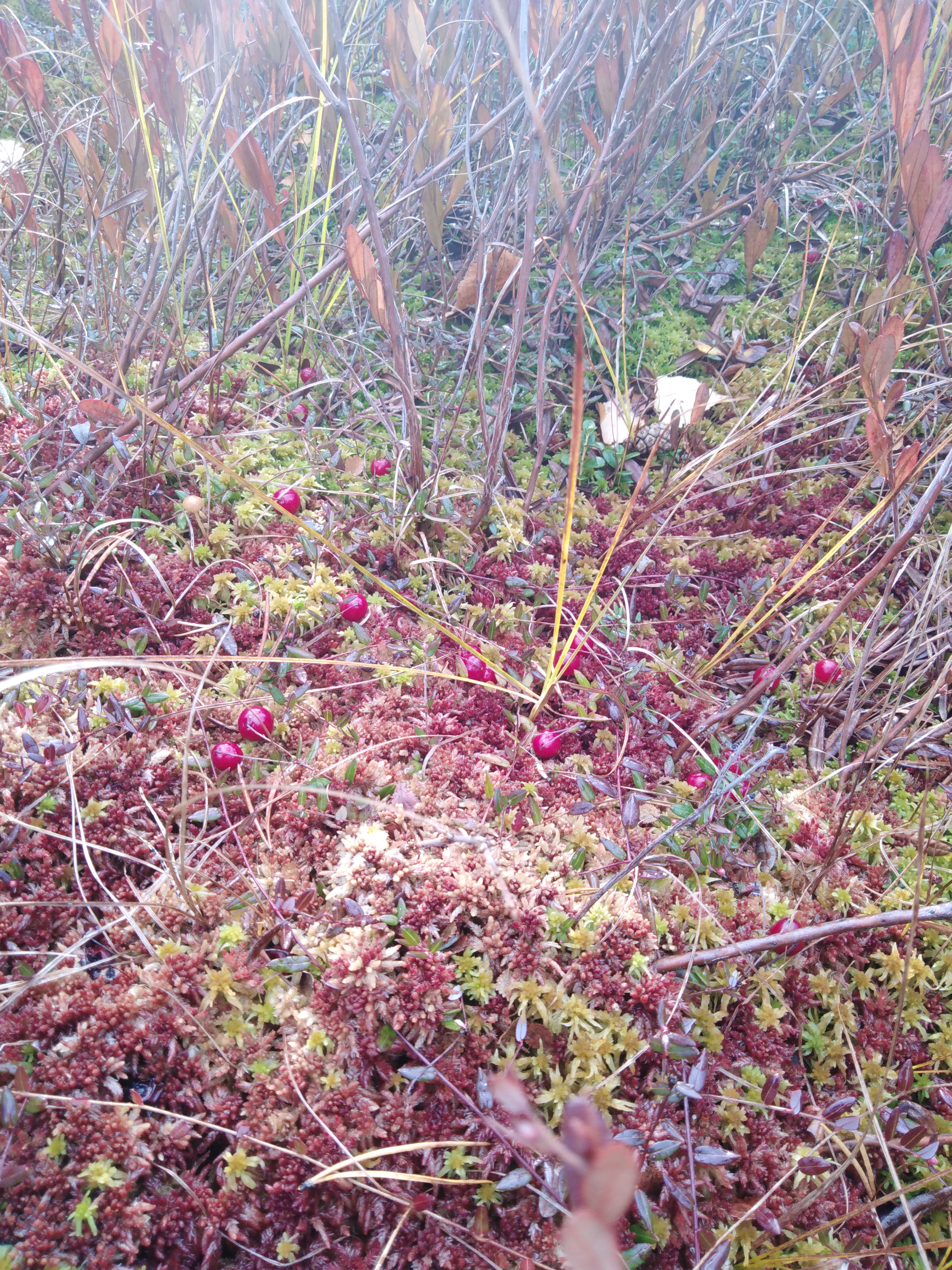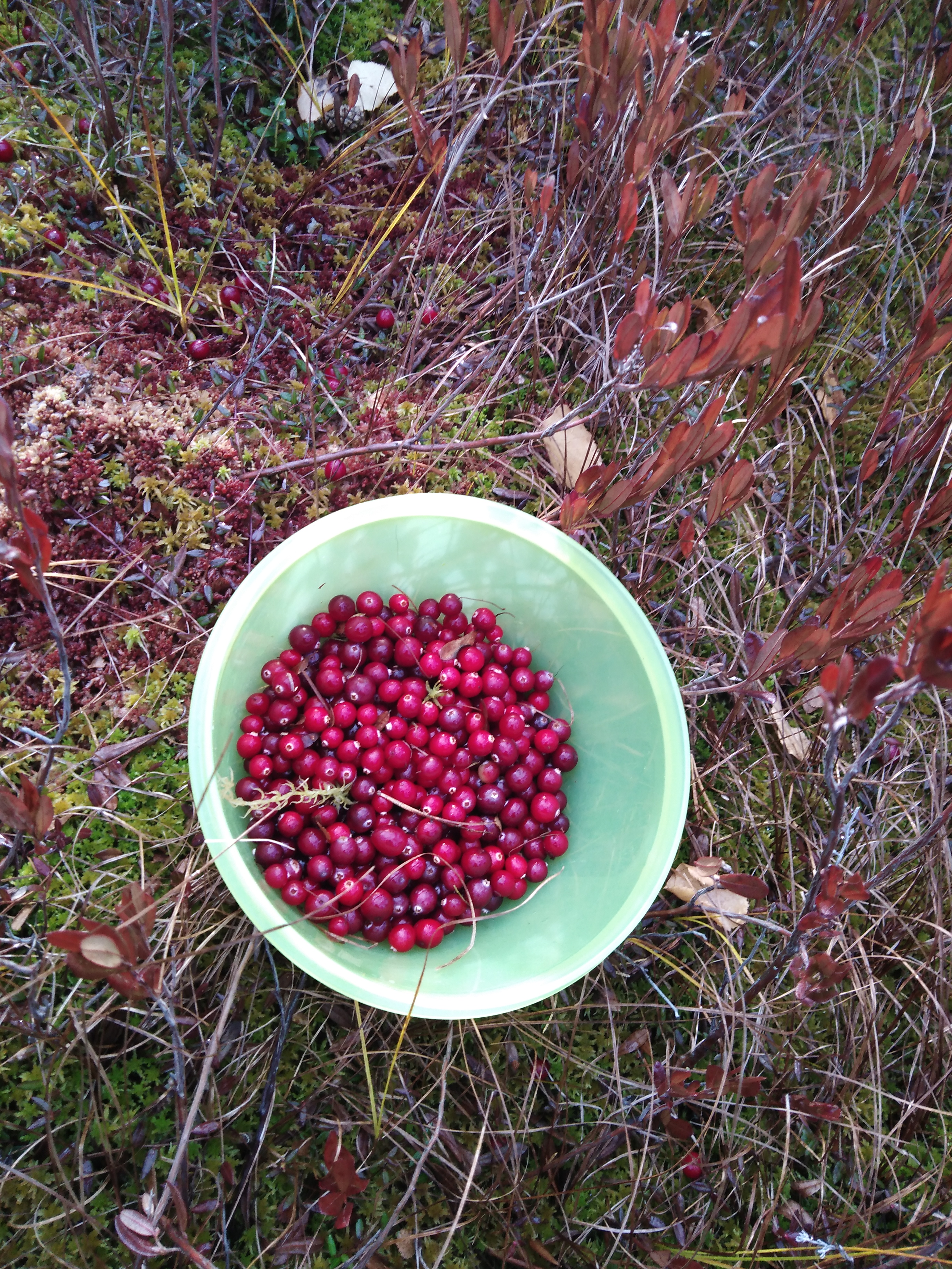 Прокатились в лес. Заехали на клюквенное болотце найденное в прошлом году. Клюквы уже мало... Крупная исклёвана птичками. Слегка очковО-мишки массу добирают как раз на клюкве...