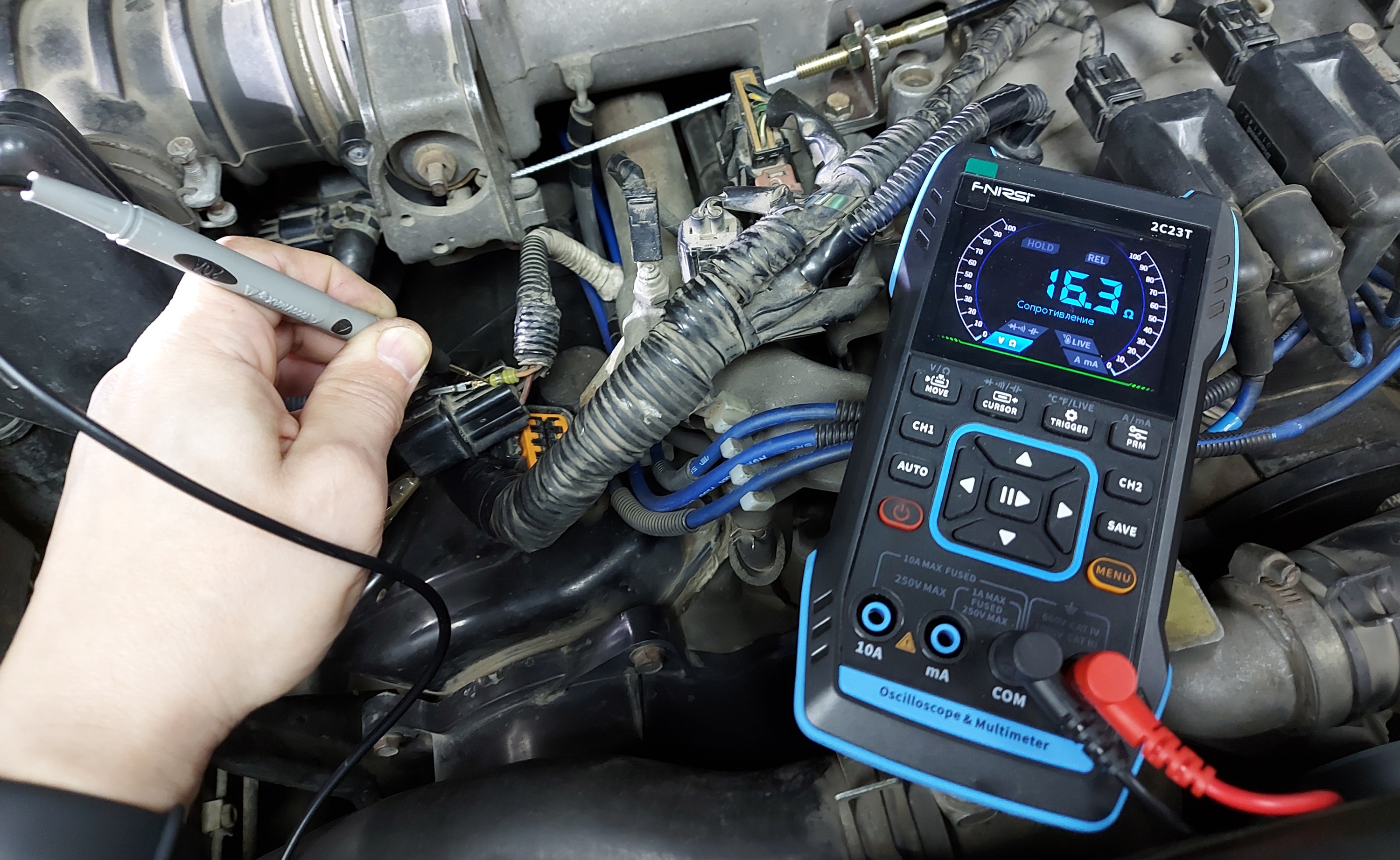 Разнял разъем, сразу замерил все форсунки. На всех сопротивление 15,7-16,0 (наверное обмотка горячая). На злополучной №4 = 16,4.