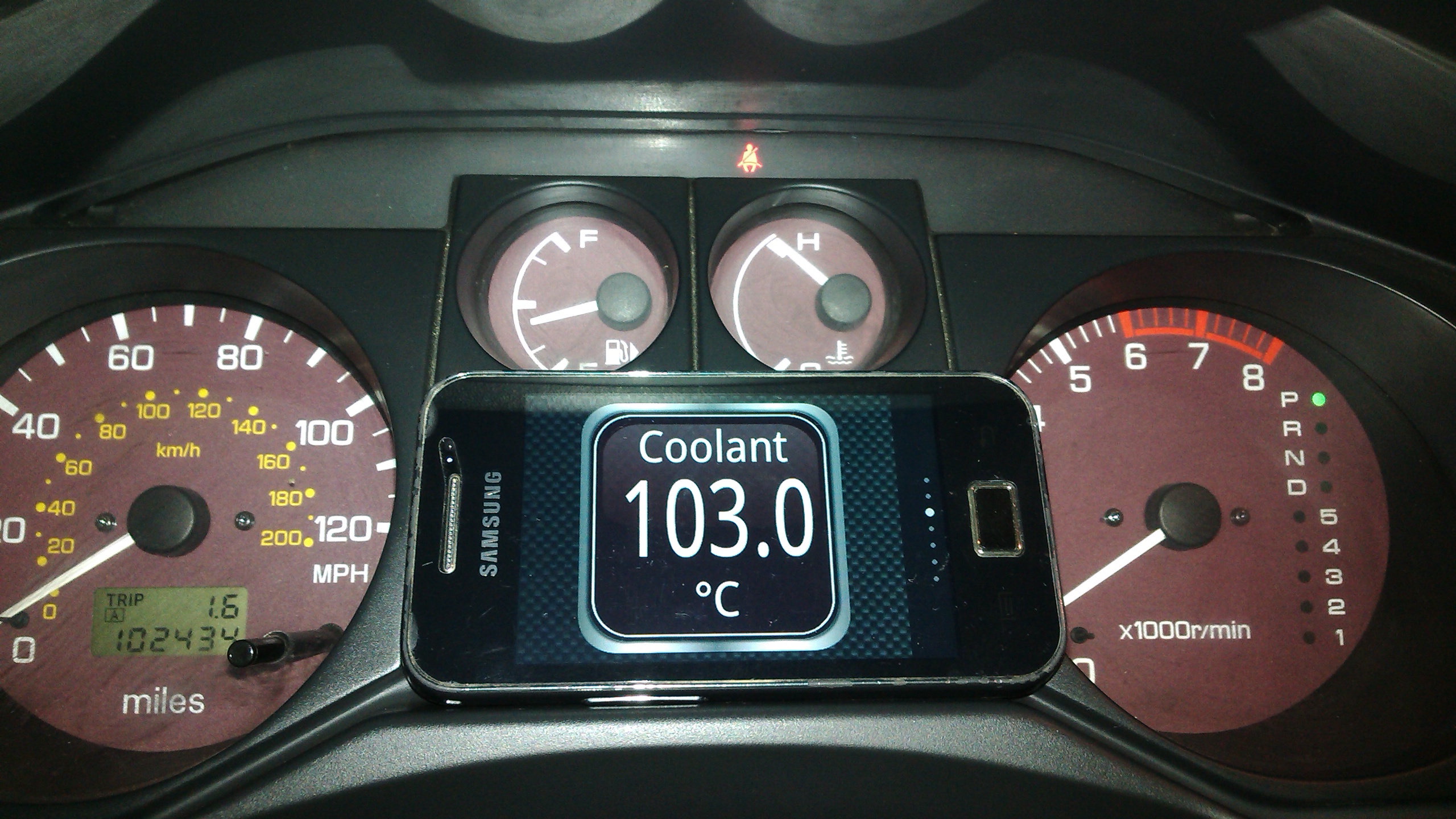 Стрелка вроде бы работает, на прогревающемся движке она на 9 часов. Но она очень уж рано при прогреве, градусов за 30 до критичной температуры уходит в потолок. Когда температура градусов 80, она уже начинает зашкаливать.