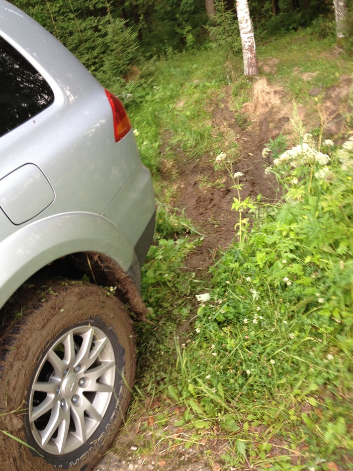 Место действия - придорожный кювет. УАЗик перепрыгнул его с третей попытки, первый ЛР Дискавери влез на лебедке. А ваш покорный слуга, после фразы: -"кули с него взять, этож гламурный жип!", как мальчик сполз в кювет, спустя пару неудачных попыток влезть "с хода" - спустился до 0,8 и задорным прыжком оказался наверху!