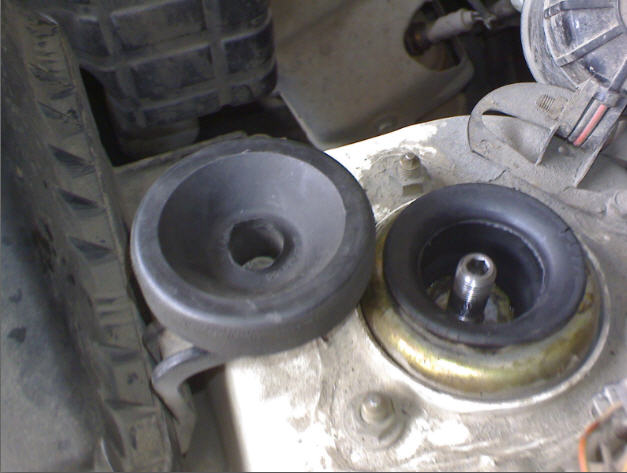 Если верхняя совсем потресканная, можно и сверху добавить, но этого мало и разобьет ее быстро, маленькая площадь. Основная опора идет там где я на фото указал стрелкой, а верхний стакан ее притягивает чтоб не было люфта. Люфт появляется когда эта резинка просела и верхний стакан упирается в шайбу на штоке, оставляя зазор.vk2 писал(а):резина снизу у меня немного другой формы и на вид целёхонькая, а вот вверху потресканная и расплющенная, как пирожок после скалки.