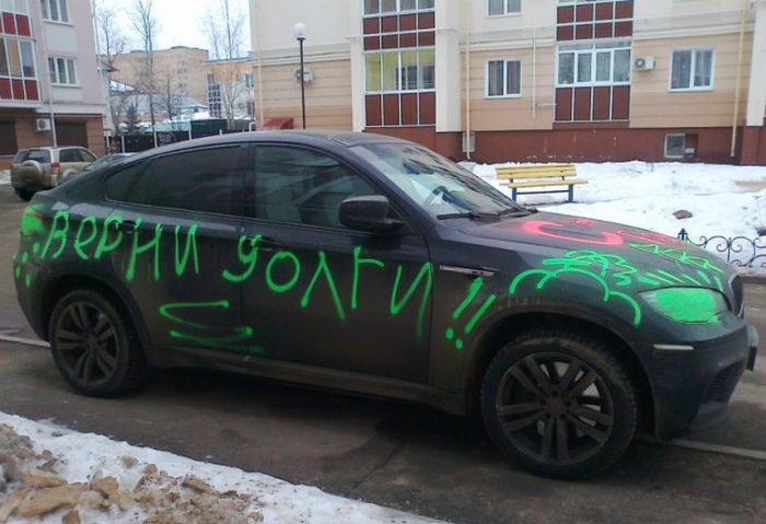 А если разведка подвела и машина не должника, вот законопослушному бизнесмену(ну может и не совсем, но никому ничего не должен) новогодний сюрпрайз...asferrum писал(а):просто так бы не разрисовали: