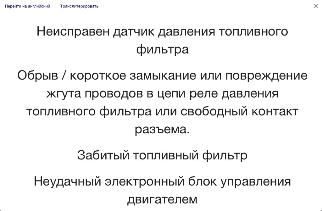 Пару раз тут посетила меня ошибка 1276. Ситуации одинаковые. Плетусь за фурами в гору, появляется окно, топлю гашетку, завершаю обгон, смотрю на панель - чек, торможу, считываю елмкой, понятно, стираю, мчу дальше. Второй раз стирать сразу не стал, прокатился, никаких изменений в поведении машины не учуял, разгоняется норм, на ХХ тарахтит ровно, 650 об и 30 мПа.SNOOPER писал(а):1276 замени топливный фильтр...MrBullyDouzer писал(а):А у кого-нить были ошибки ... и P1276 ?