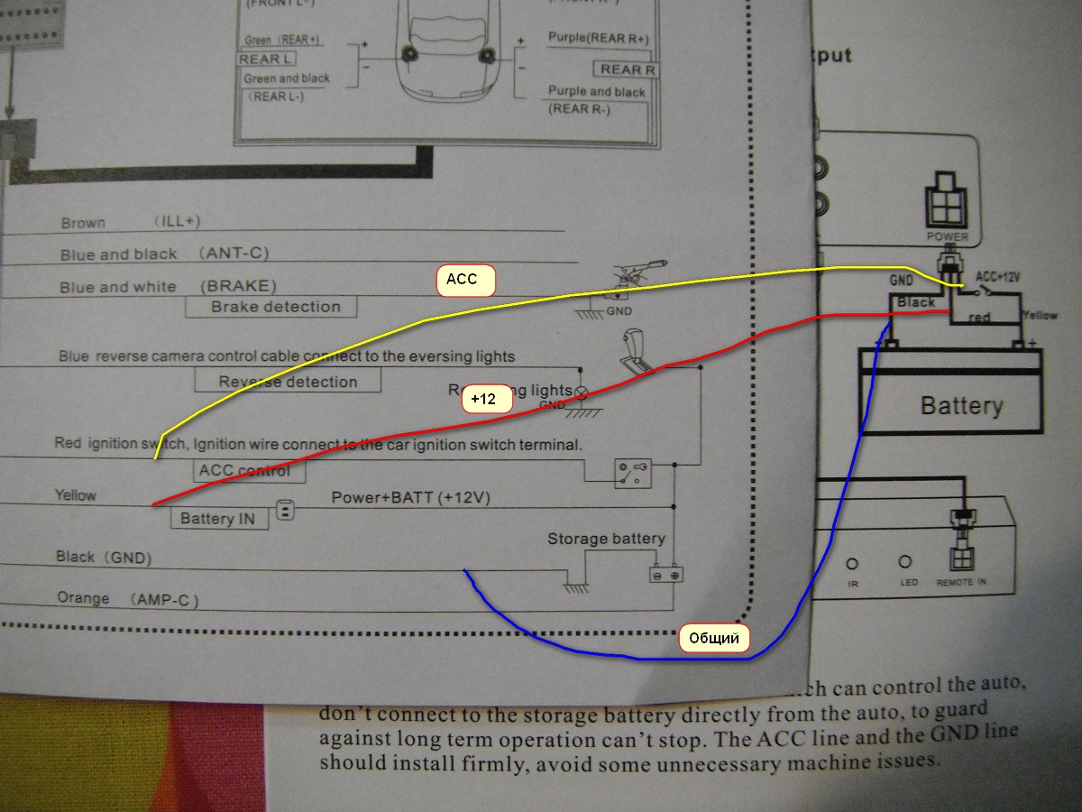 Жёлтый провод, который ACC, он же идёт к магнитолы. Его бери и подцепай на место того провода с кнопкой. А на схеме кнопка это типа и изображен замок зажигания.drozd272 писал(а):Так куда там цеплять,я не особо то электрик.Фото скорее всего тоже нет этих проводов зажигания,лазить в замок с вольтметром,мне проще кнопку воткнуть,вот я о чём.Сама голова загружается около 15-20секунд,уже нашёл плюсы,например когда радио играет,можно наблюдать не только часы на экране,но и забортную температуру.Мануал на английском,я изучал немецкий,буду читать с женой