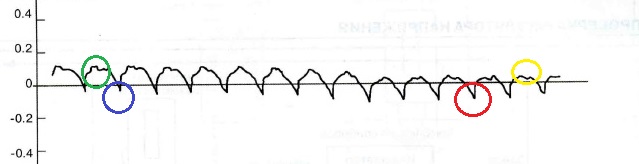 Эти значения меняются сотни раз в секунду, с частотой пульсаций тока генератора, при относительно постоянном значении напряжения бортовой сети (13,8 до 14,5В.) Легко увидеть что значения стали преобладать ниже нейтральной линии, преобладать ток разряда.