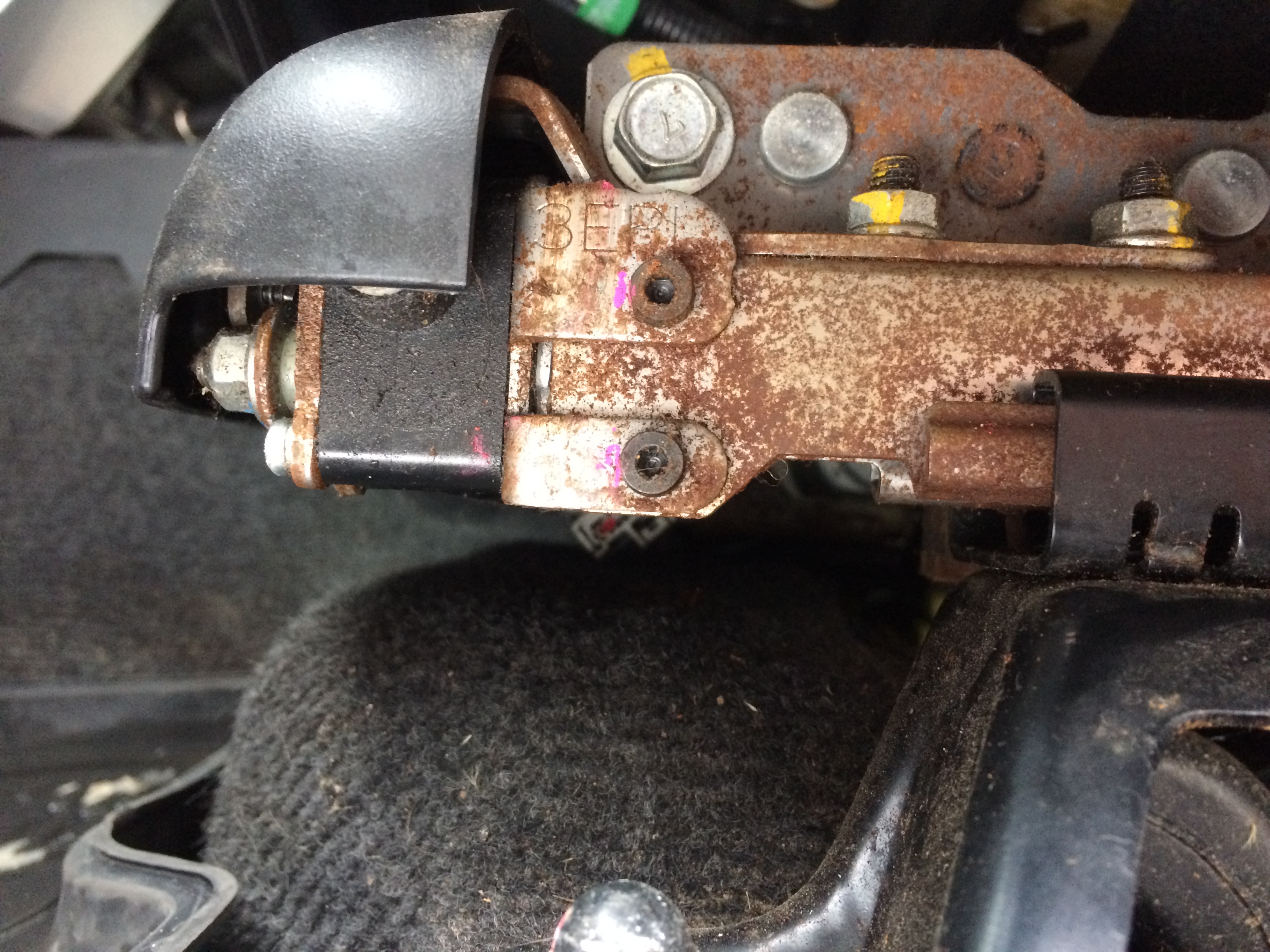 Ржавчина на станине, где кресло закреплено. На пассажирском такого нет. Особенно не мочил никогда.