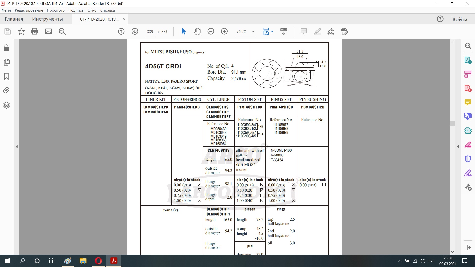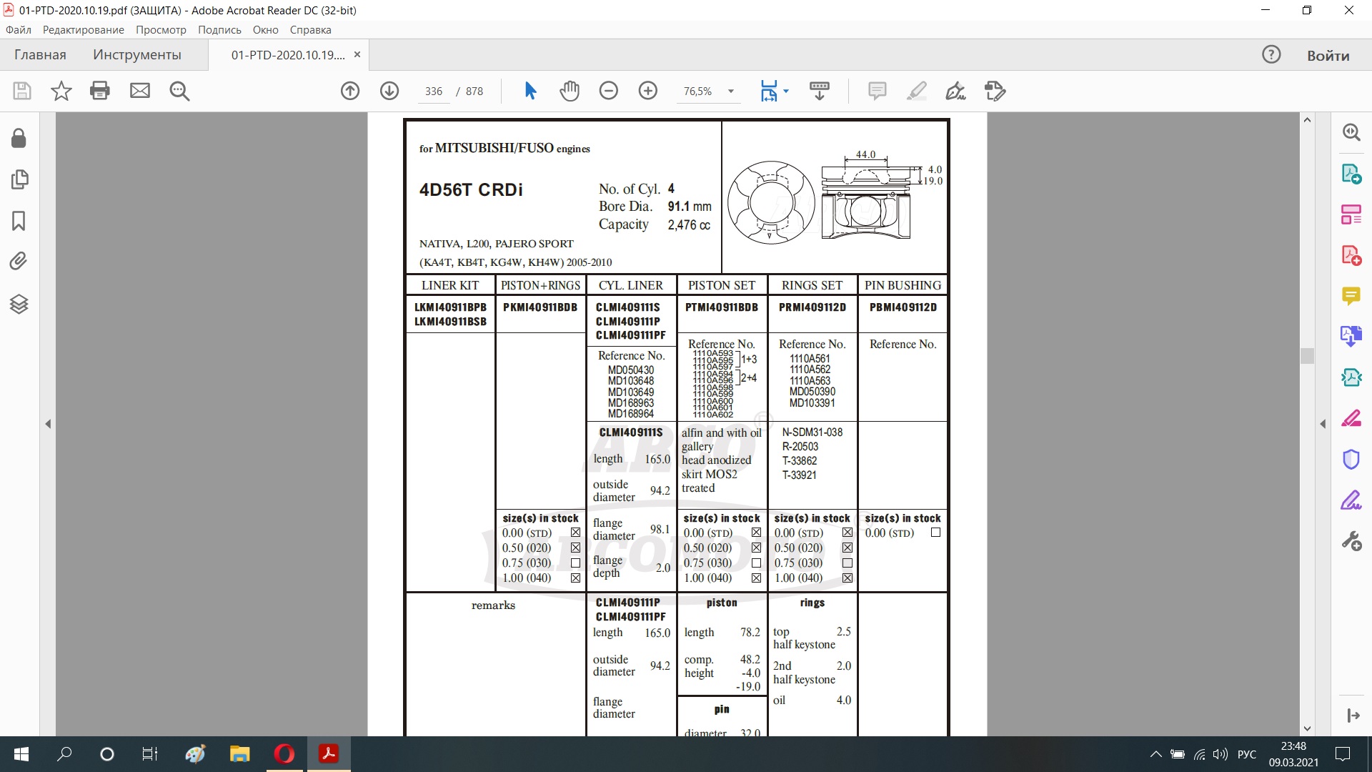 (спросил у Михаила, а чего они поставили на 4D56 Sport 2 поршень от L200)