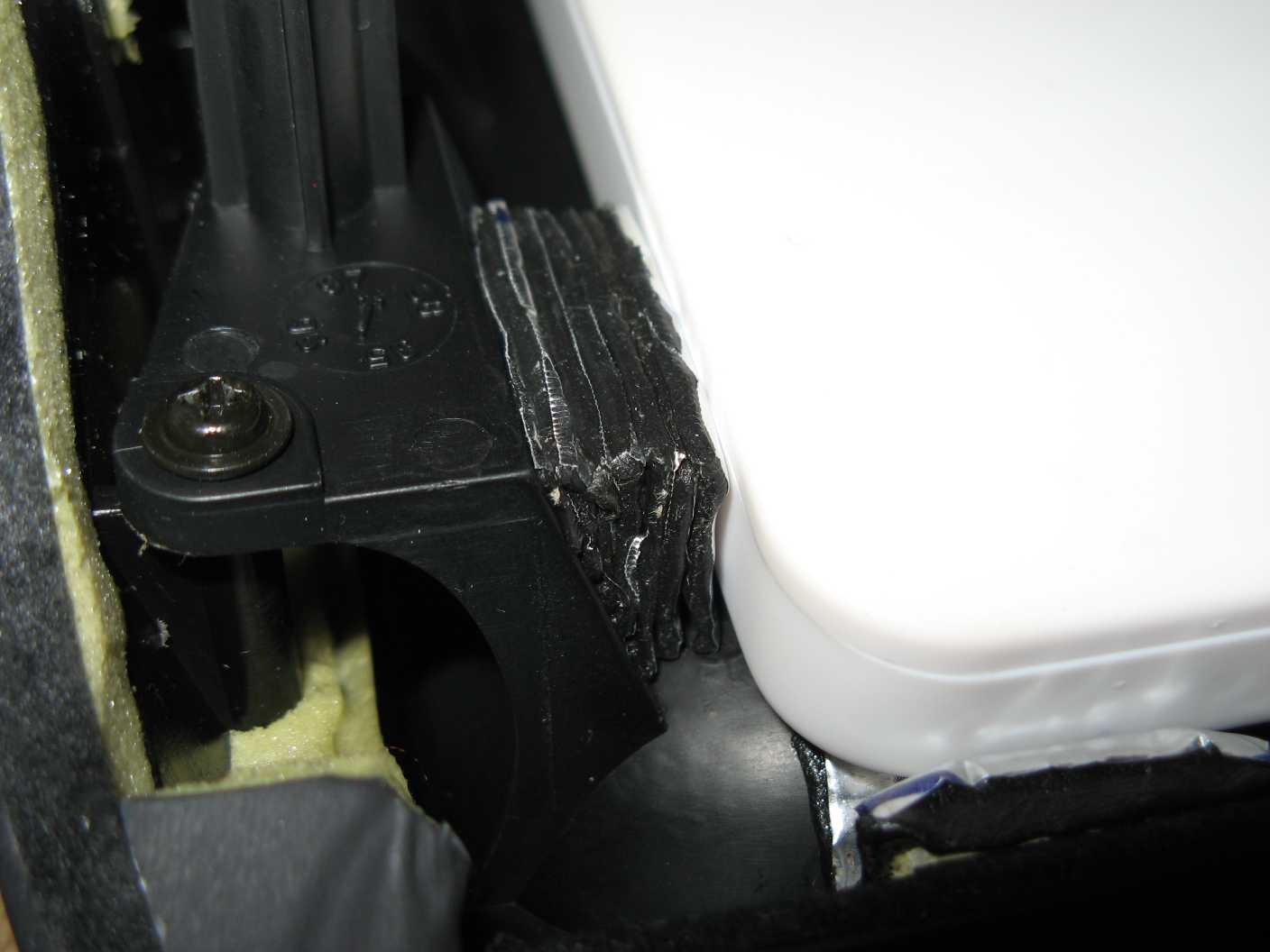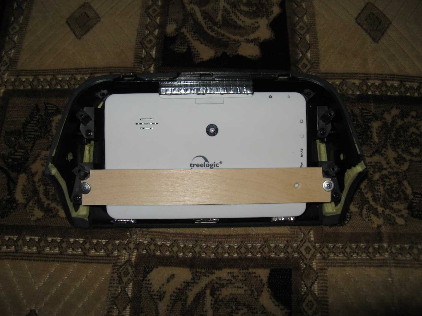 То лень, то некогда. Потихоньку прикрепляю навигатор к рамке, уже почти готово, осталась только перекладина, которая прижмет низ навигатора. Внизу прямоугольные огрызки китайских деревянных палочек для еды на двустороннем скотче + слой вибропласта для точной настройки толщины, сверху уголок из пластикового короба на двустороннем скотче, прижатый для надежности куском резины и законтренный вибропластом, сбоку просто вибропласт в несколько разношироких слоев, чтобы выпрямить угол - быстро и удобно.