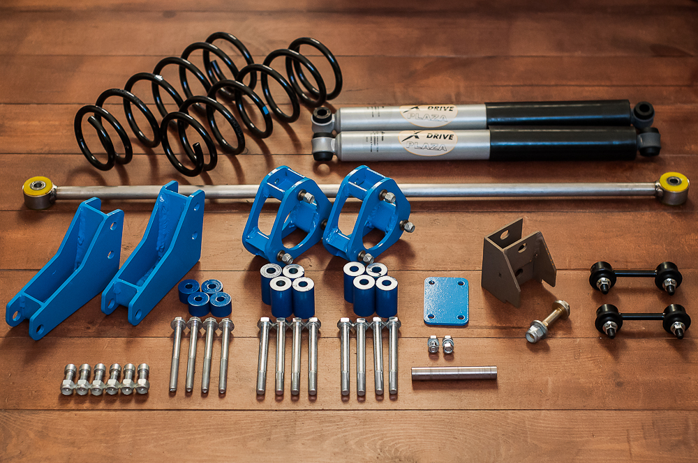 m0nster, стоимость полного комплекта? и без пружин (которые от санни), аммортов (которые от нивы), линков (от чего не знаю, но по длине подбираются), панары (родную нарастить не долго), и проставок под стойки (от ИО)?