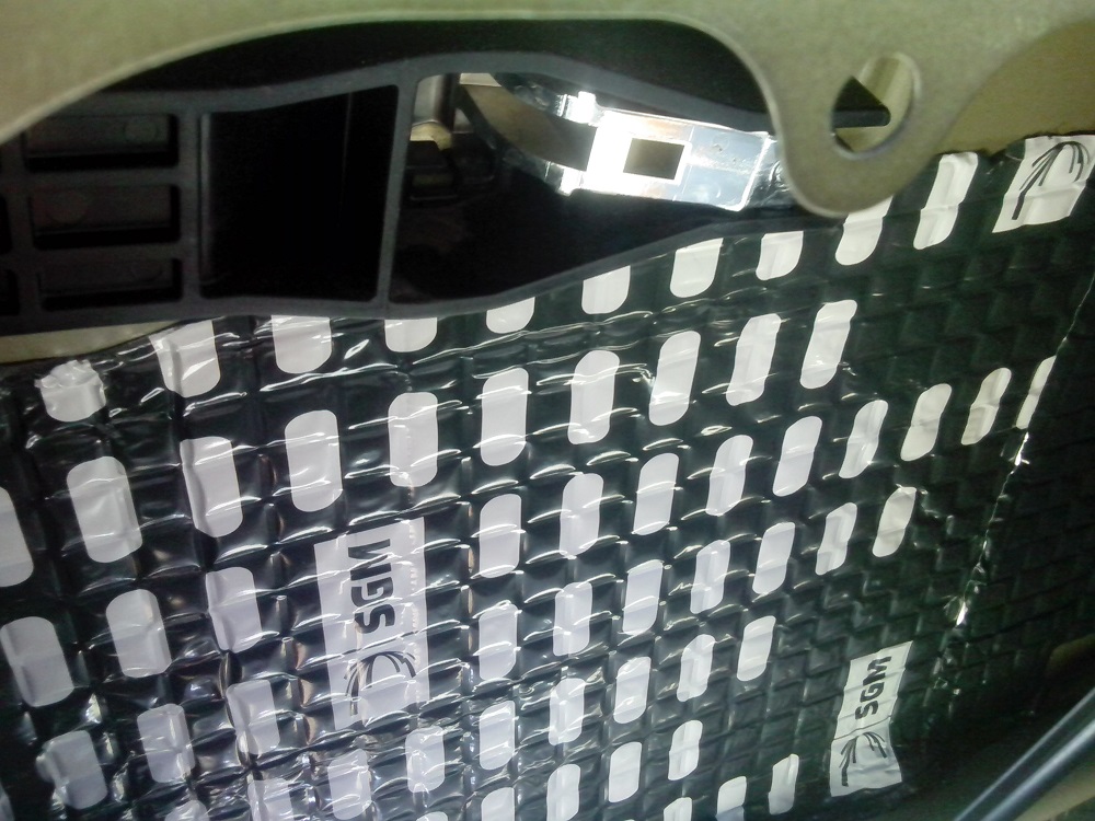 Шумить надо летом при жаркой погоде,чтоб накалялось железо у машины,тогда и фен не нужен.Ставишь машину боком,чтоб двери накалились пока снимаешь обшивку и заодно не подалёку вибру положить,чтоб тоже грелась.Остальное всё просто,протёр из нутри дверь,померил кусок вибры,отрезал,прилепил,раскатал валиком прикаточным,чтоб квадратики на вибре исчезли.Пол шумил при разобранном салоне,он за день нагрелся,а я пива напился,затем зашумил