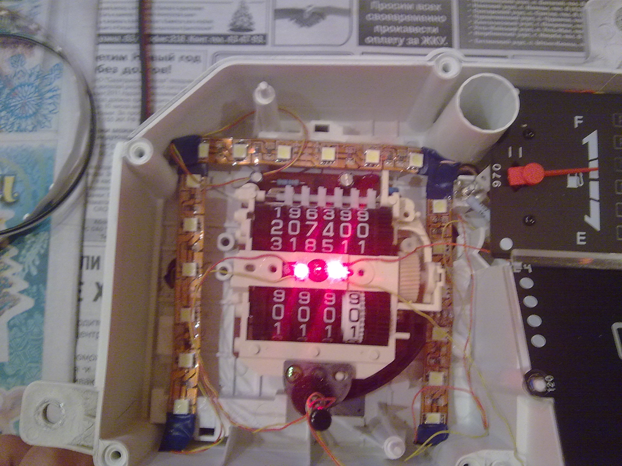 Подсветку стрелок надо было делать дополнительно красными светодиодами...