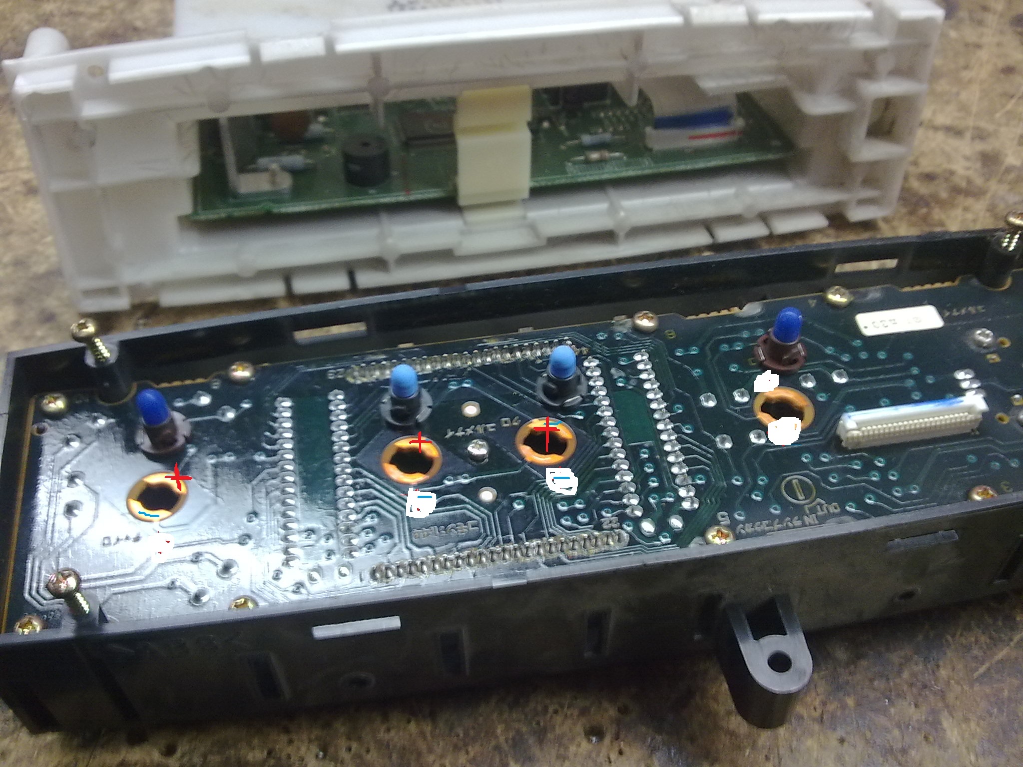 Чтобы добраться до блок-комфорта, придется его снимать, отсоединив все тросики и разобрать, чтобы поставить светодиоды. В этой теме все подробно расписано!