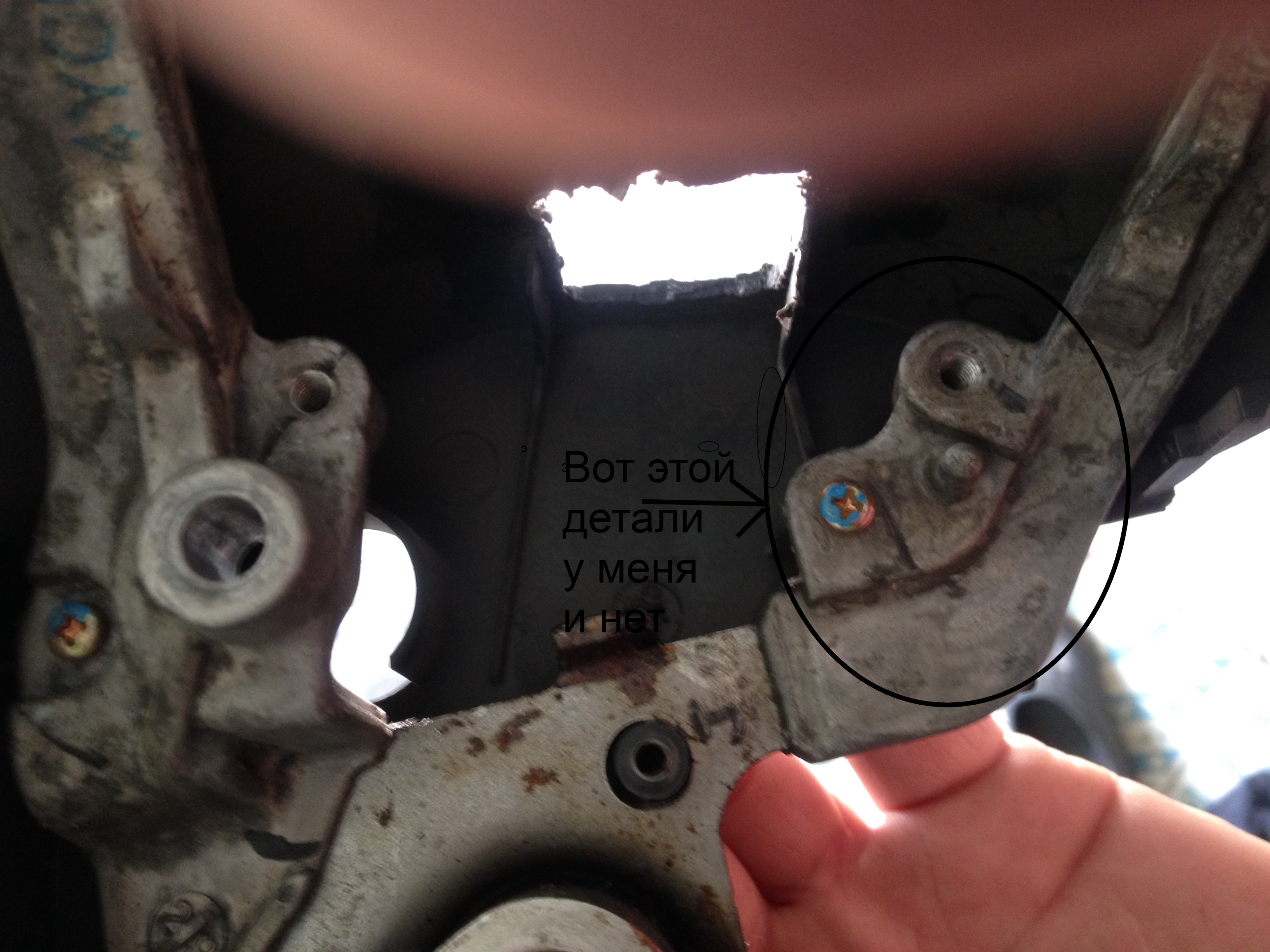 ладно,мы не гордые, просверлю отверстие да нарежу резьбу(вместо пупа, как на фото) и закреплю, чтобы вообще не болтался...а так имеем пару мм вверх\вниз свободного люфта у рычага (мелочь конечно)....