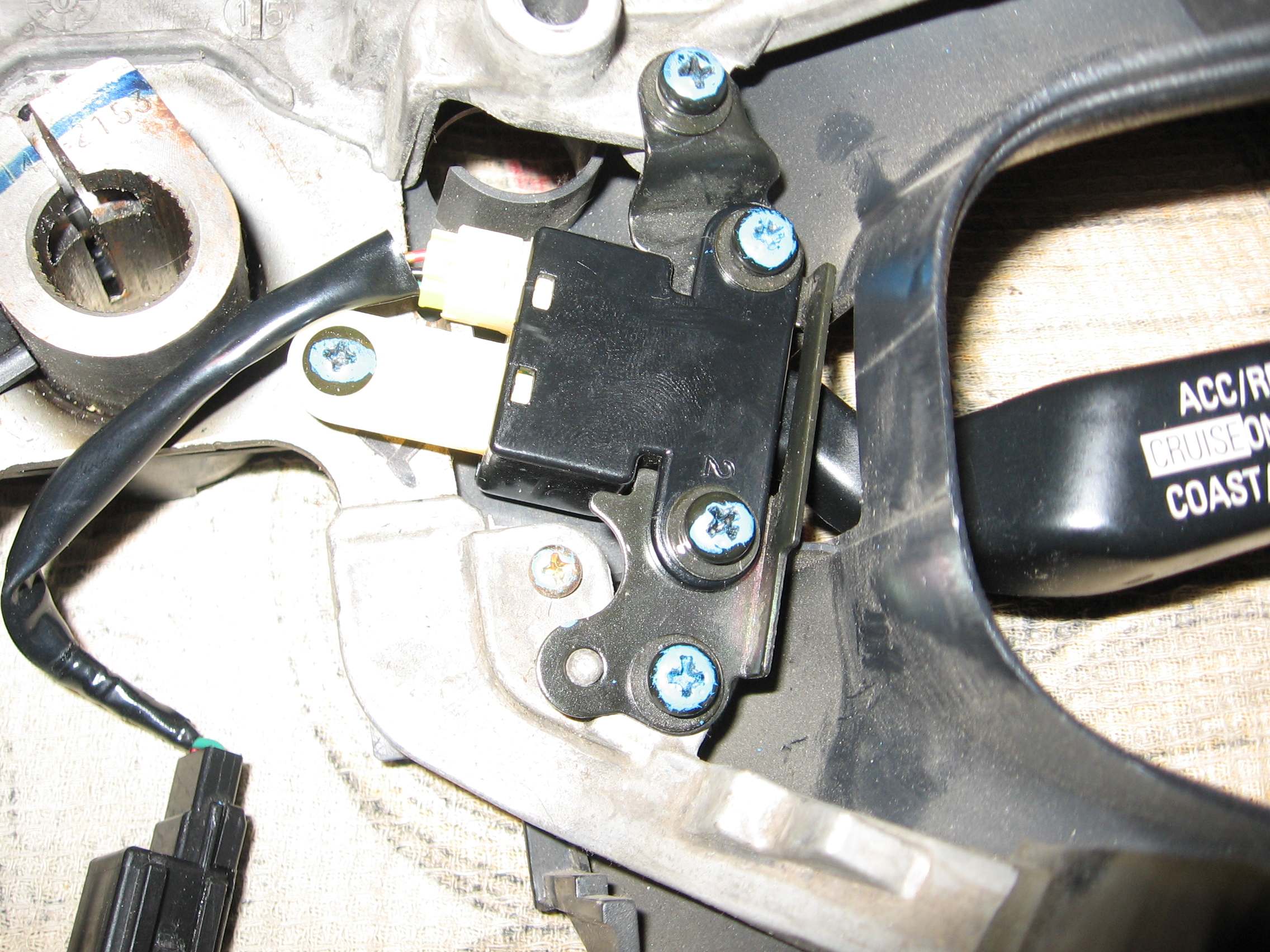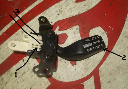 1. Восстановлен третий штырёк в колодке подрулевого переключателя. В результате иногда удаётся зажечь на приборке надпись CRUISE, сама система не работает, выключить лампу можно только выключением зажигания на 10 сек, до щелчка реле ETACS (или как там её). При нажатии ON/OFF явно видно просаживание напруги на приборку (все контрольные лампы малость тускнеют). Подумал и опять обрезал этот ПИН нафиг.