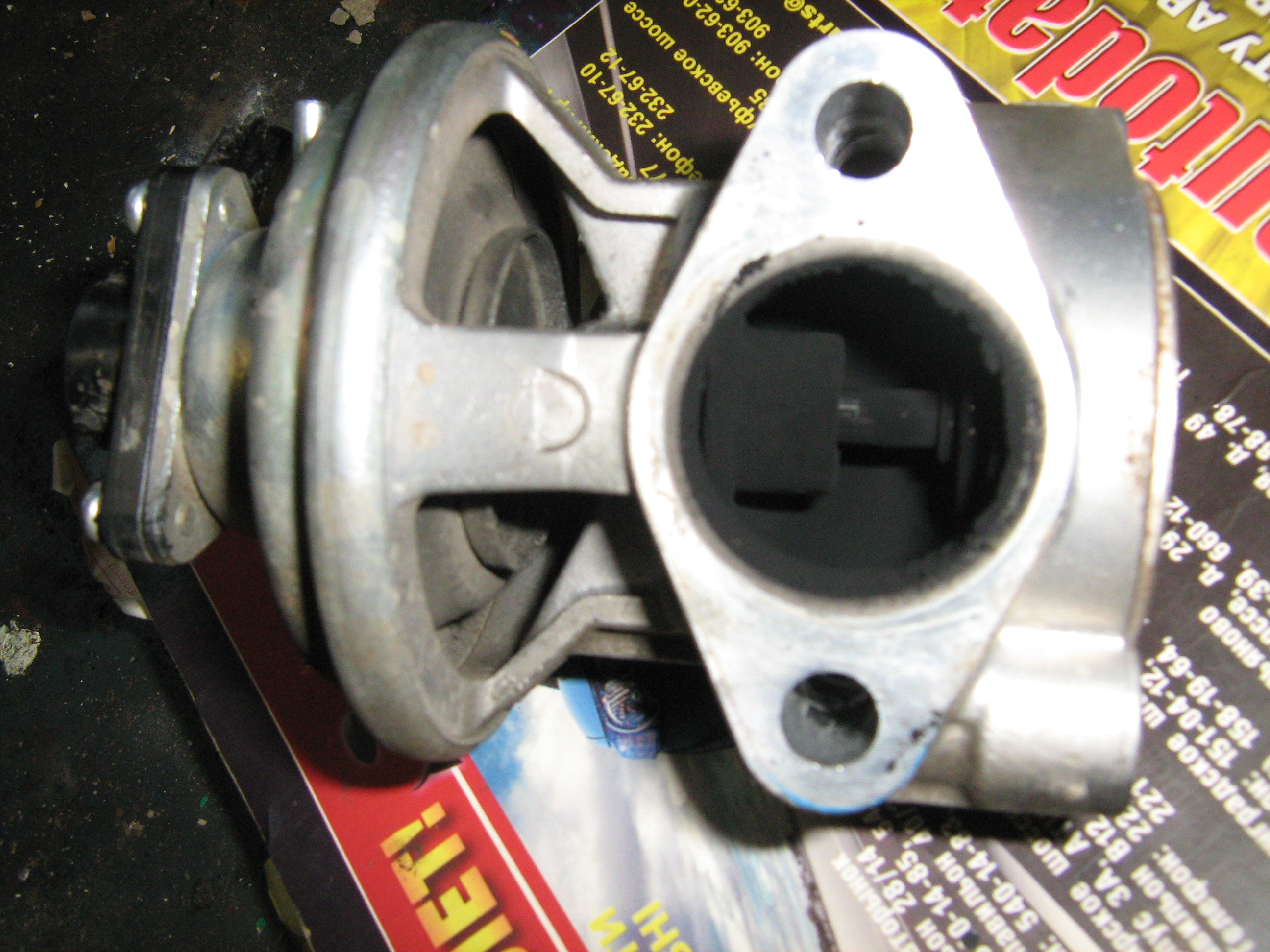 Вобшем получилось так-снял весь клапан ЕГР промыл его wd-40 потом бензином ,снял заглушку и выташил шарик из шланга короче вернул как было.Диагностика по лампочке показала проблем нет.Возникла мысль поставить вместо заглушки какую нибудь сеточку чтоб хоть половина гуталина прилипала к ней.Клапан если заглушен шариком остается в закрытом положении-на него давит пружина диафрагмы.Попробую разобратся с предидушими ошибками откуда они вылезли.