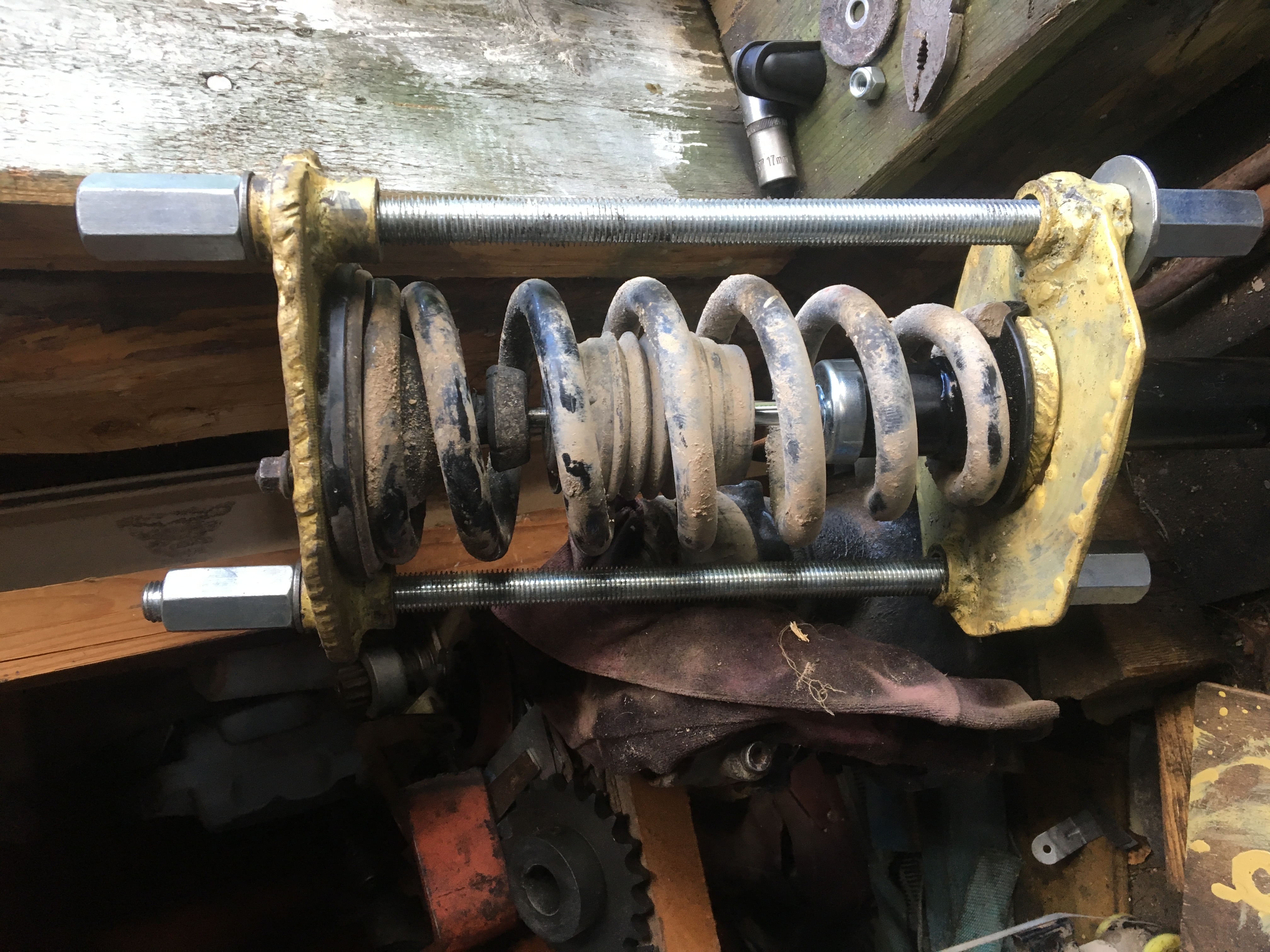 На Л-200 поставил себе сегодня передние стойки Zekkert,фильтры масляные уже штук пять таких пользовал, колодки передние тоже ездят ни чего стремного(не считая цены),Германия сделанная в Китае.. Родные проехали 160 тысяч,втулки нижние менял,съемника пружин не было,не проверил как аморты.Внешне сухие но на ямах машину качало да и руками передок легко раскачивался. Цена на Зеку просто смешная 1350 руб за аморт. Абсолютная копия родных.Выбито Zekktrt на стойках, сварка аккуратная.Посмотрим на сколько хватит. Сделал заодно съемник пружин, посмотрел как на Каябовском сайте стойки разбирают, думаю нахрена все со съемниками пружин карячатся.Резьба на 20 два часа автогена сварки,токарки, и можно хоть супер пружины выковыривать!))) С учетом того что все разбиралось и 3 подкатных домкрата, поменял за 3 с половиной часа.