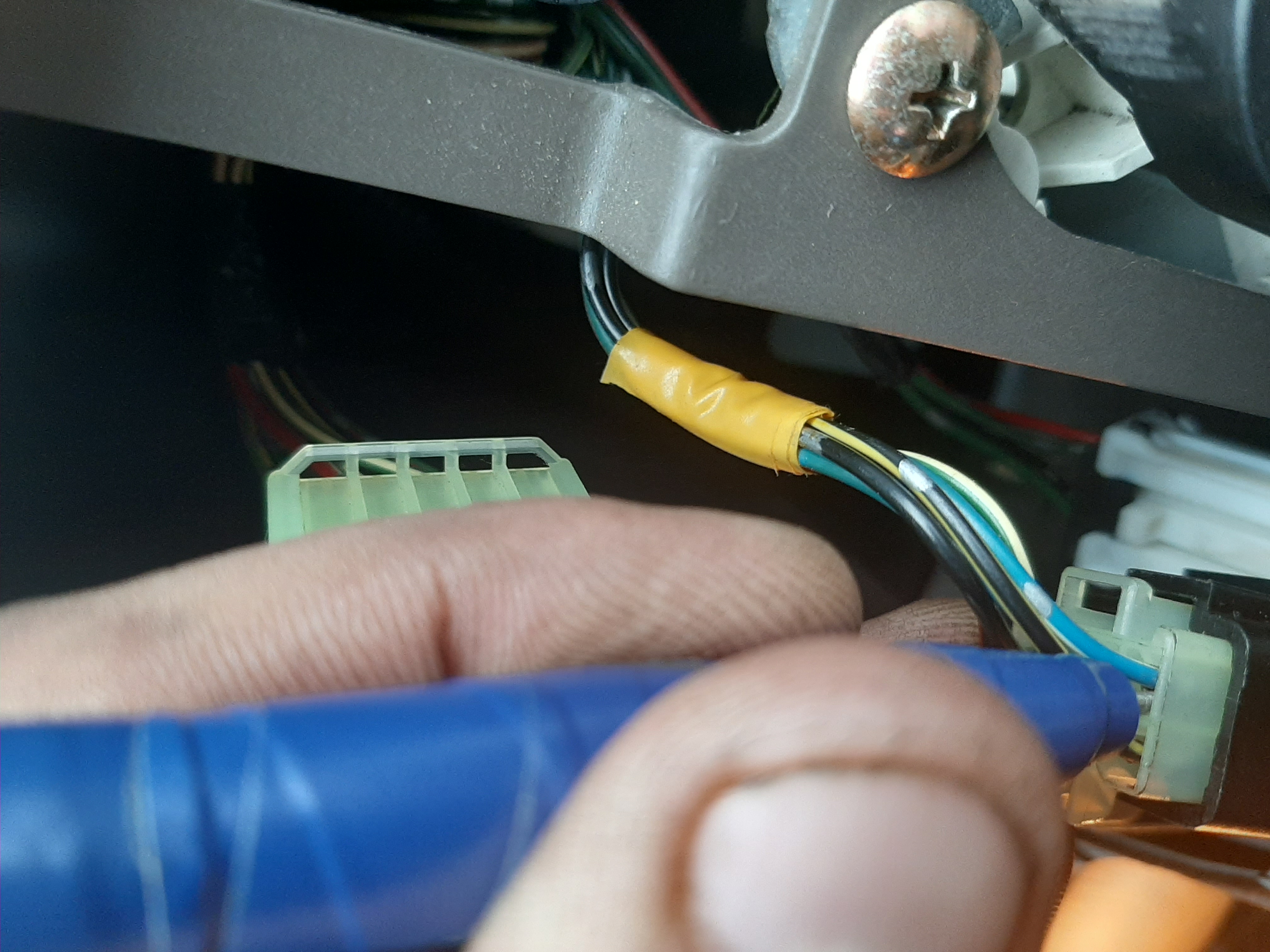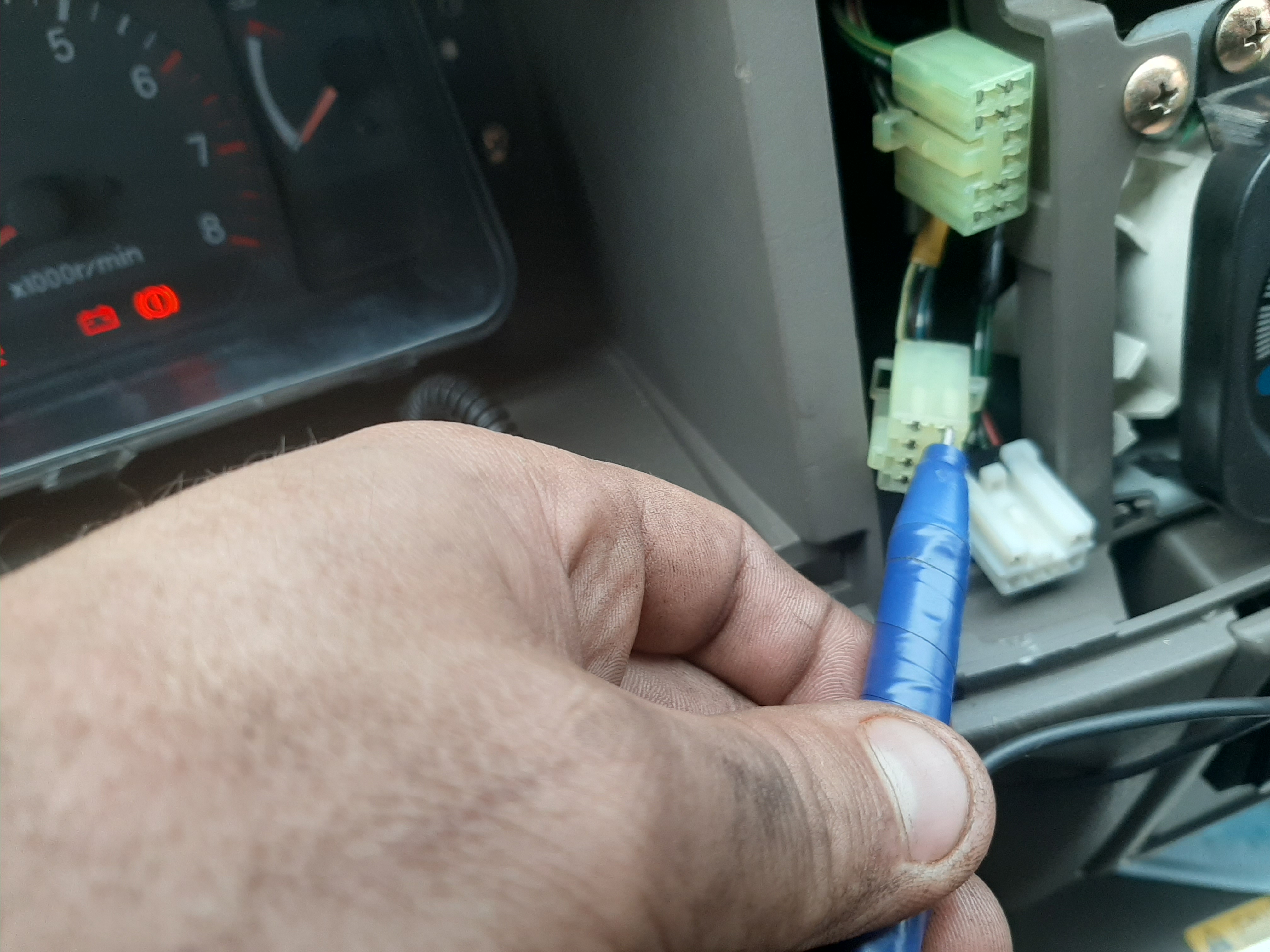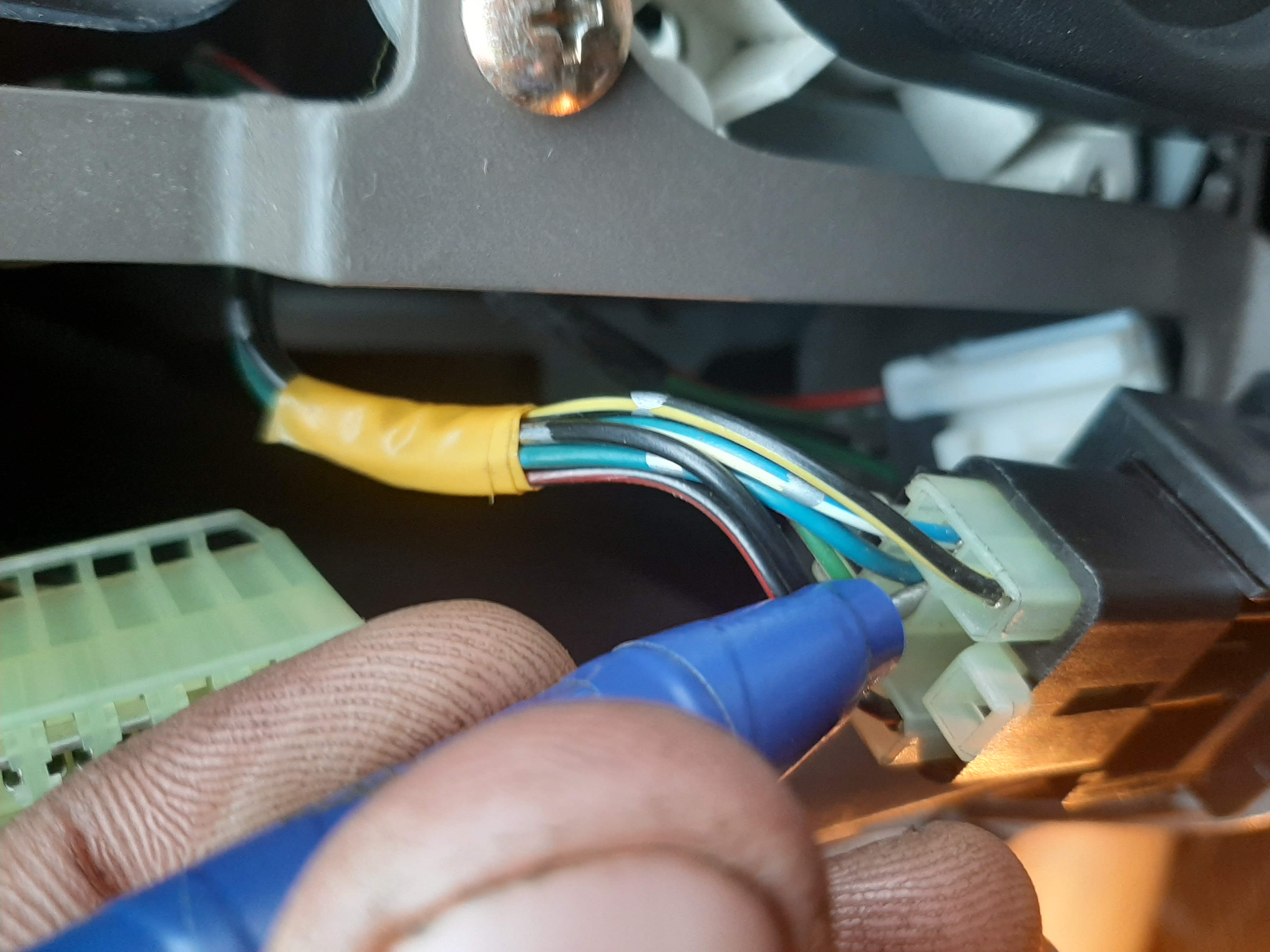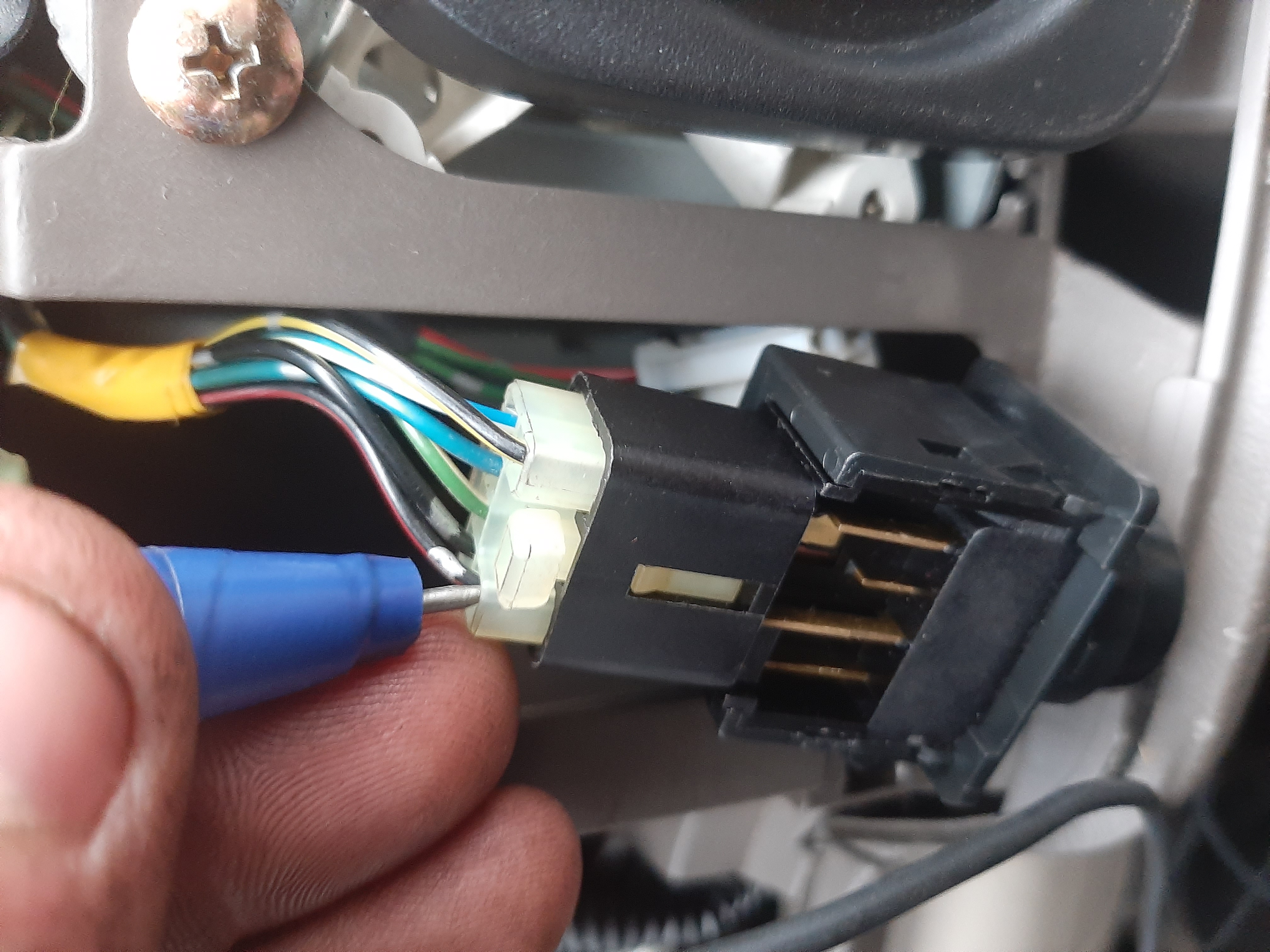 Всем добрый вечер. Сегодня добрался до подогрева зеркал. На подсветке приборов менял лампочку за одно решил проверить кнопку подогрева на наличие на неё питания. Проверил контролькой оказывается есть, три провода под напряжением. Но когда жмёш кнопку питание через кнопку не идёт. Разобрал кнопку, я впрошлый раз когда лазил в неё видимо пластину с контактами не правильно поставил. Перевернул как надо собрал обратно. Питание пошло на один провод, но всё равно было тихо, с правой стороны реле не щёлкало. Только вот что было не понятно в кнопке два диода или лампы я не знаю. В оранжевом колпачке на оба конца подаётся плюс но она не светит. На синий в обще не чиго. Я не знаю это наверно подсветка. В общем мучался я мучался понял что сам не сделаю. Собрал все до кучи поставил на место. Поехал одного члена семьи забирать с работы, как то не взначай нажал кнопку подогрева а он работает. Я в обще в ступоре. Может на не заведённом двигателе он не включается. Лазил контролькой провода проверял вот фото есть