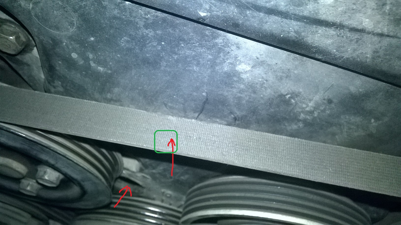 Открутился один болтик крепления маленькой защитки и начал грызть ремень.