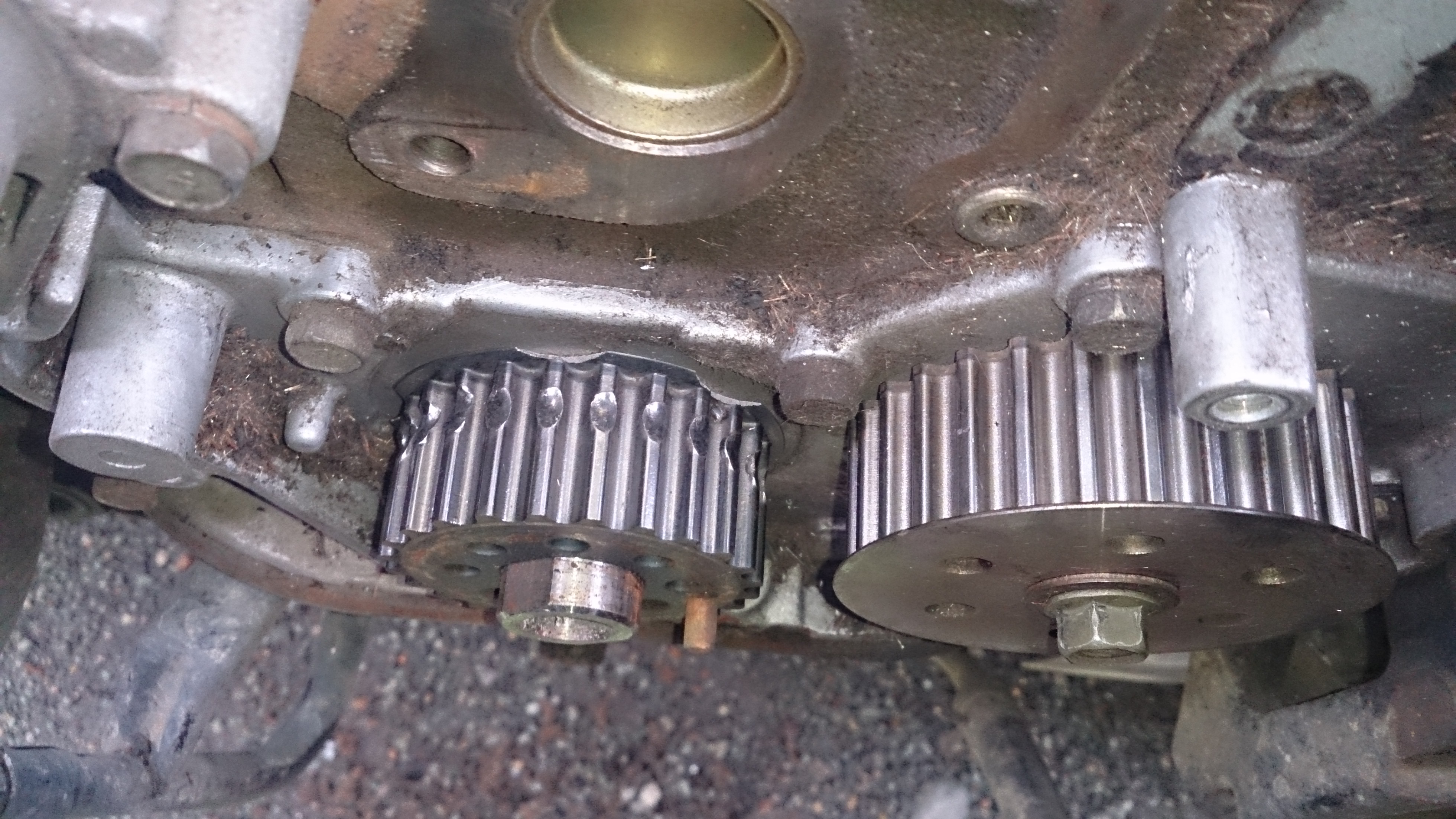 Но ремень он не порвал до конца. а остатки болта вклинило между шестерней ремня и корпусом лобовины.