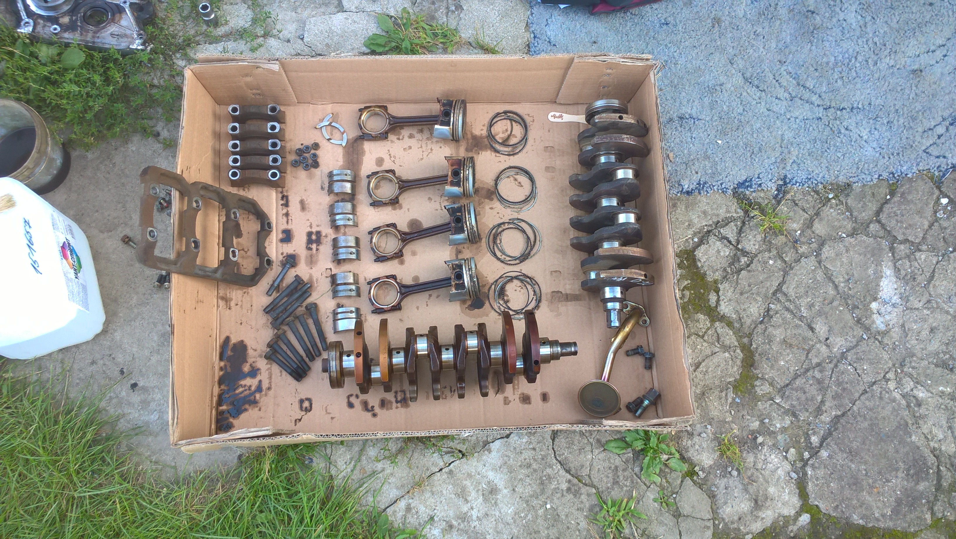 Разбор всего и вся блока с маркировкой всех деталей, что и откуда, и отмывание с просушкой в уайтспирите и профамом, отдирание герметиков заняло четыре дня. Димексид едкая, но годная штука чтобы налить в днища поршней и отмочить масляные каналы.