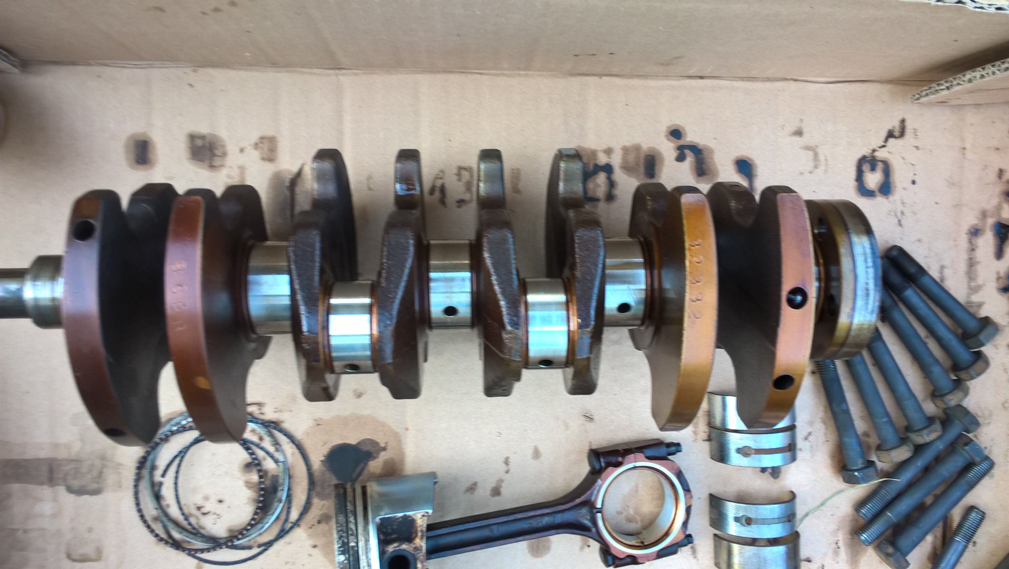 Коленвал с разборки совпал по размерным меткам с родным почти полностью (33322 против 32332 и ВВВВ против ВСВВ). Одну пару (4) коренных вкладышей переставил на другое место (2), шатунные оставил на своих местах.