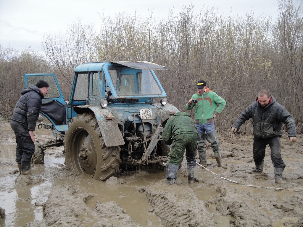 Сначала взад прадиком тянули. Трос-галстук сразу порвали. Другим тросом взад не смогли. Вперед он забоялся заезжать.