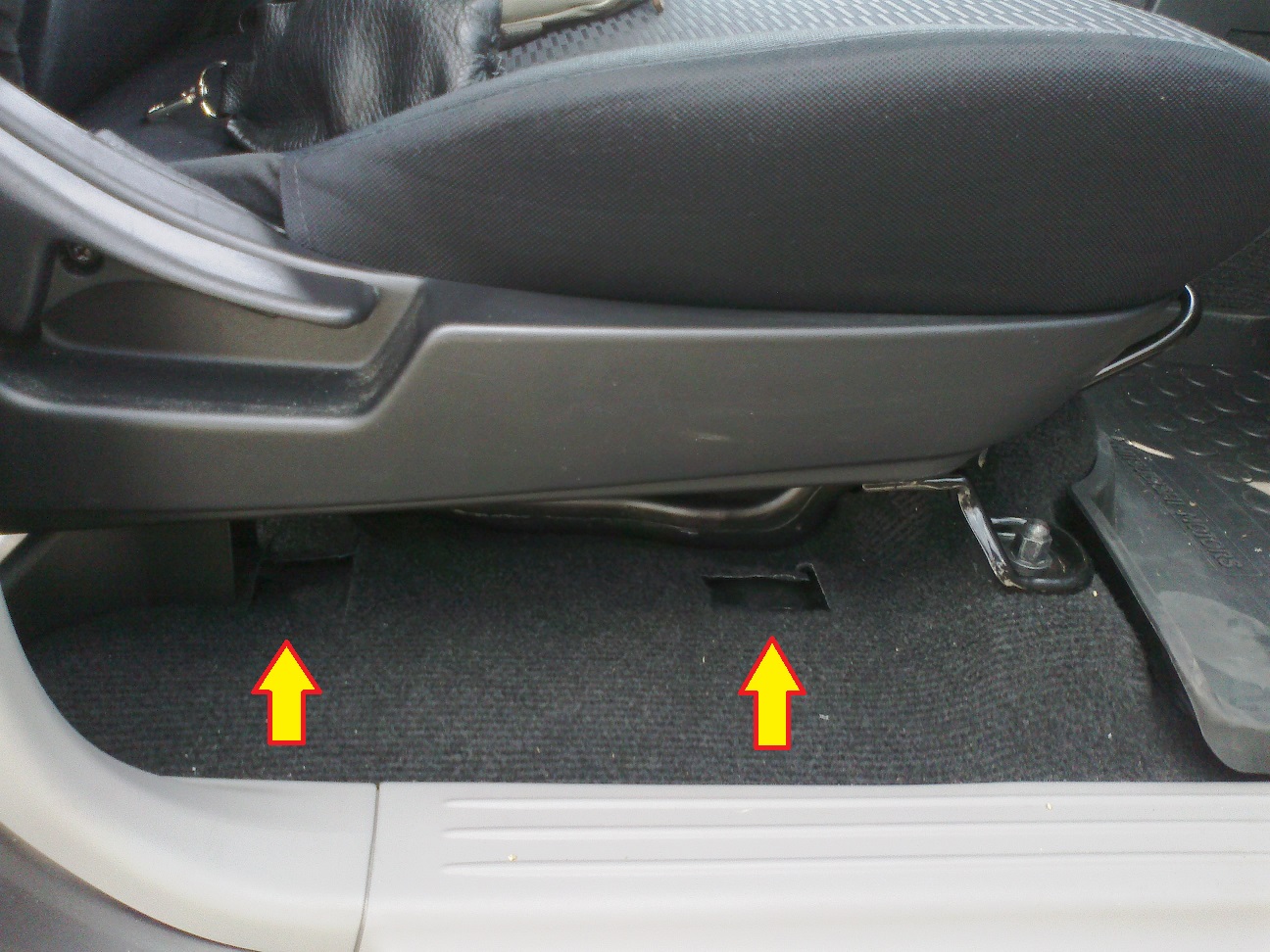 Какое назначение этих прорезей в ковровом покрытии справа от пассажирского сидения?
