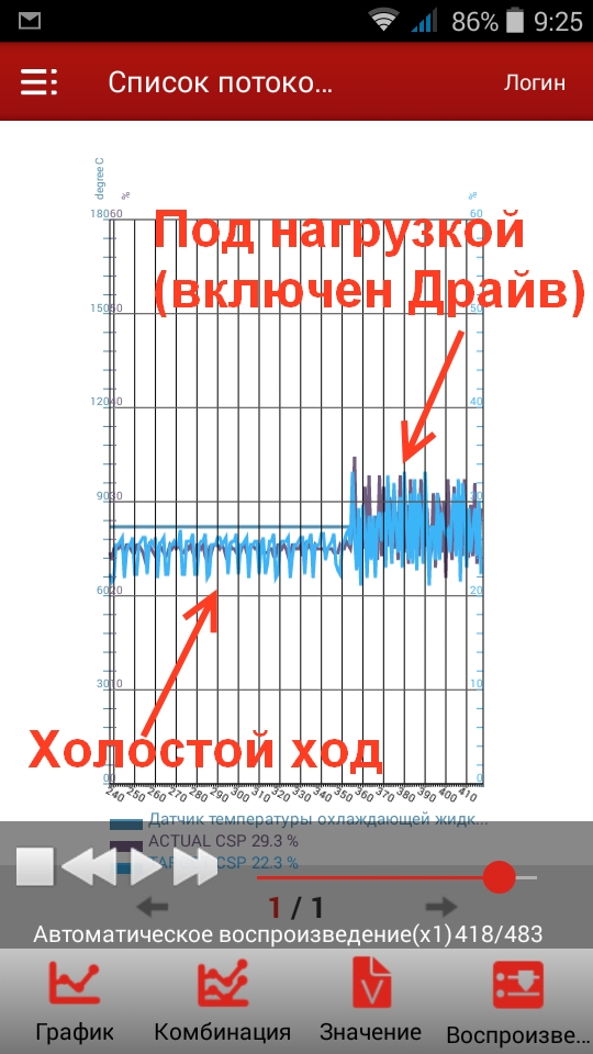 Диагностика делается на холостых, нужно что бы хоть немноговоемени прошло, дабы понять что меняется, а так же на хх в положении драйв, тогда можно будет подумать, а так у вас ни чего не поеятно