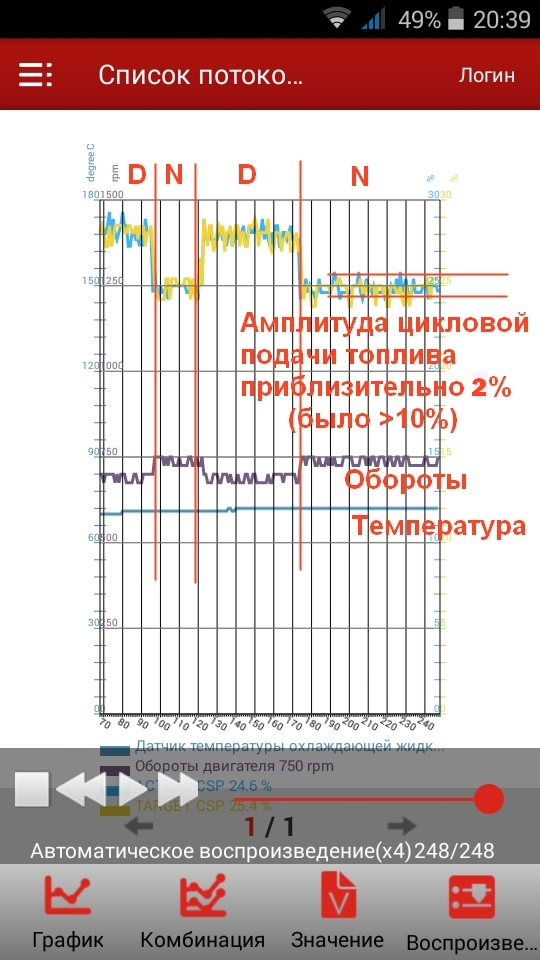 А вот так выглядит ровная работа двигателя после повторного снятия насоса, чистки позиционера (с последующей калибровкой) и замены подшипников его штанги: