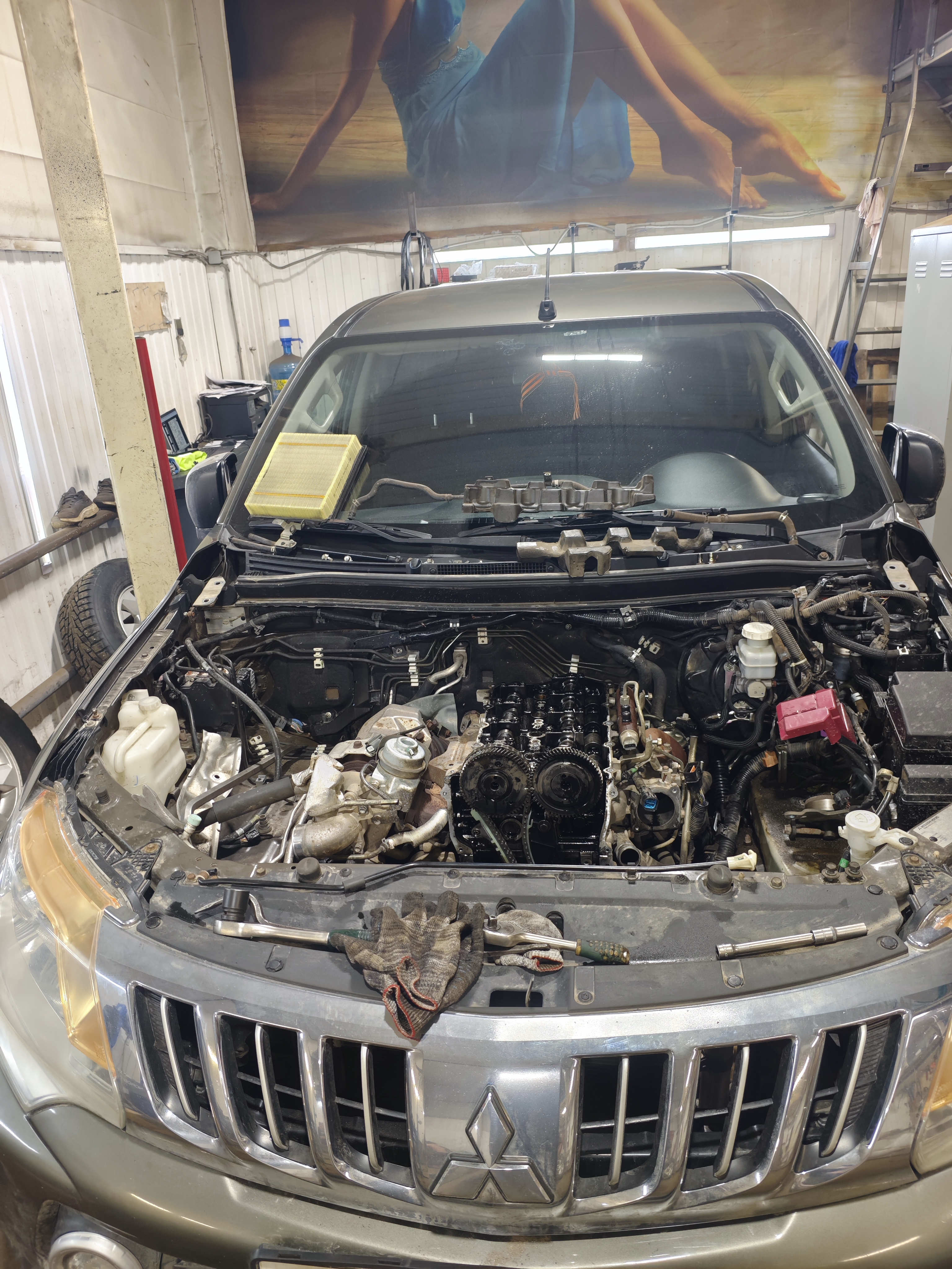 Замена цепи привода ГРМ на Паджеро 4 3.2 л в нашем техцентре.