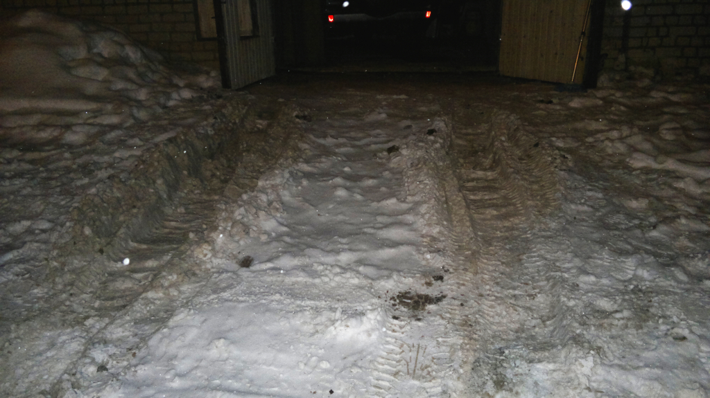 У мну гараж для Паджерика на небольшом пригорке.В этом некоторое удобство есть,хотя и неудобства тож имеются.Зимой снег от ворот скидываю прямо с пригорка вниз(от лености