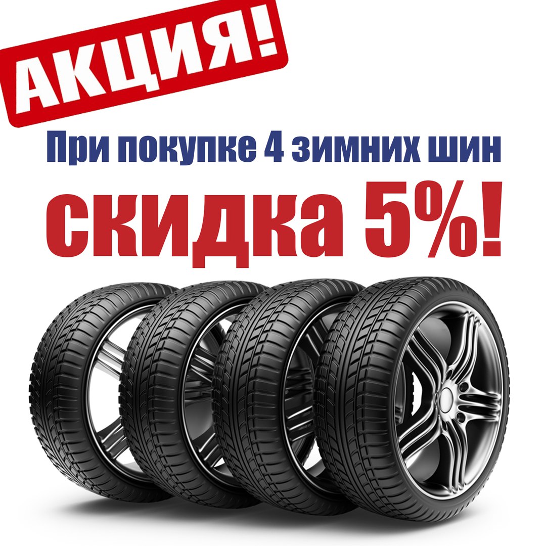 Уважаемые клиенты! При покупке 4 зимних шин Вам предоставляется скидка 5%!