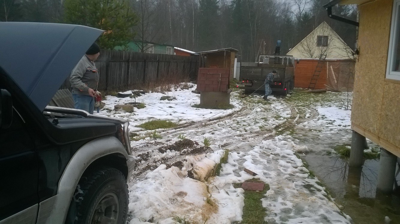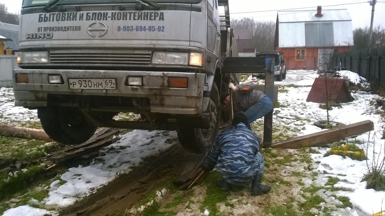), хорошо сын был дома, приехал на Монтерике и вытянули лебедой. Поставщики обещли приехать поставить на фундамент баню когда промерзнет земля. Незнаю обманут или нет.