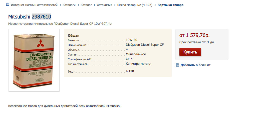 В общем с утра позвоню бухгалтеру пусть остановит перечисление! До 9-ти утра банк еще не обрабатывает платежки!Петрогор писал(а):Добрый вечер!Вопрос такой насущный..С моторкой понятно,можно эксперименты проводить,а вот с АКПП я бы не рисковал!Да и если верить счету,цена там как то не очень на это масло!Может ну очень хорошая синтетика!В продаже на каждом углу и в любом инет магазе есть наше масло:Mitsubishi AC H1ZC1X05 ATF SP III или Mitsubishi 4024800 ATF Mitsubishi Diamond SP III вот еще Mitsubishi MZ 320159 ATF SP-III", 1л(сингапур)!И все это хозяйство по цене 193-293 руб./литр.RuslanTX писал(а):Сегодня зашел в Росхим у себя в Ульяновске. Купить противозамерзающие добавки в бетон (стройкой занимаюсь). В общем купил! Но увидил там на стене название американские масла AMALIE... они же масла продают