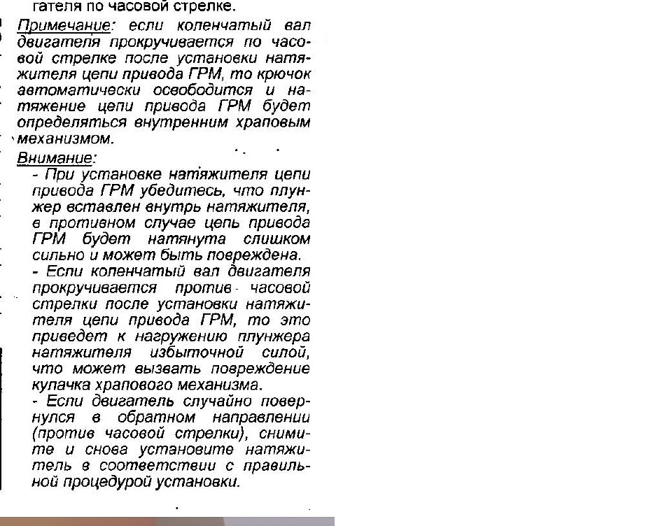 =Если коленчатый вал поворачивается против - по часовой стрелке после установки натяжителя цепи, поршень будет чрезмерно натянута,