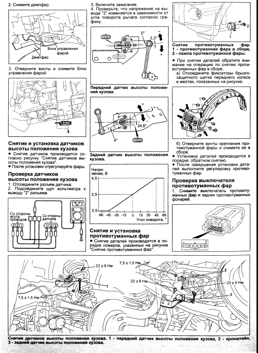 У моей машины при пробеге ок. 200 т. км. тоже отломался кронштейн заднего датчика (поменял), потом развалилась и сама тяга (скрепил проволокой). Через полгода после этого умер и сам датчик ). Симптомы были похожи на те, что тут описывали некоторые ребята - контрольная лампа на приборке иногда зажигалась, иногда гасла, при этом головной свет "корректировался" так низко, что фары светили метров на 10-15.