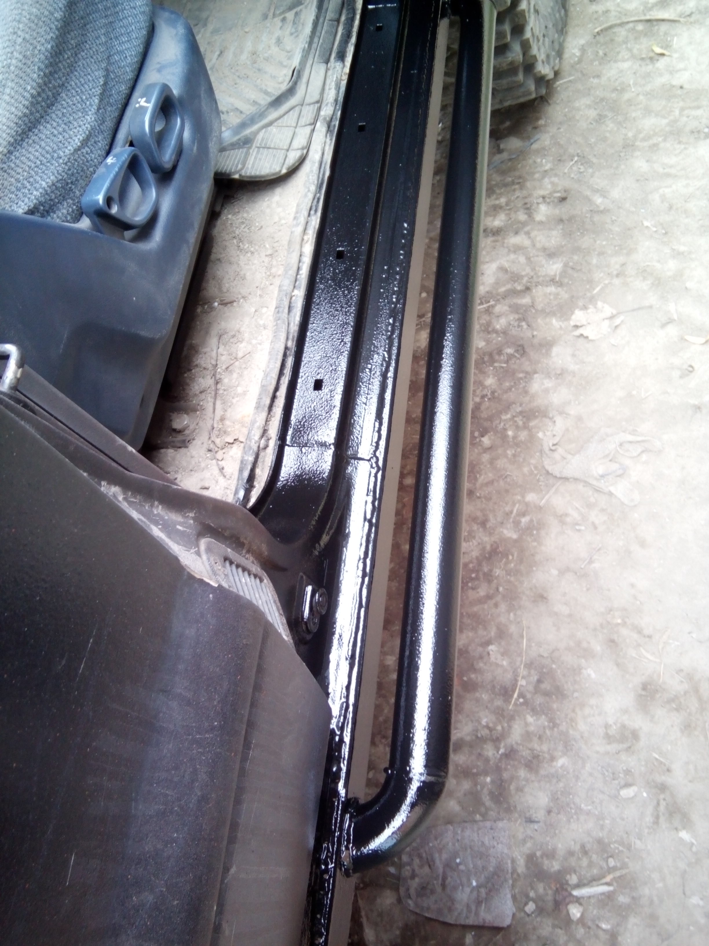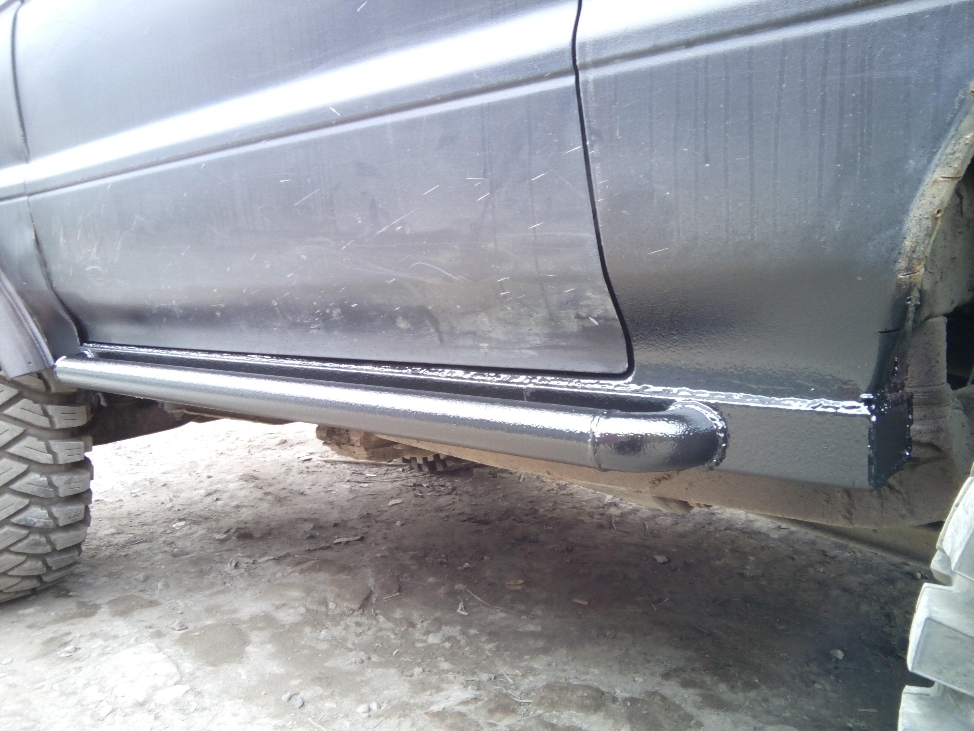 Пусть швы может не айс, но на прочность это не влияет. Профиль 100х60 3 мм, вварен вместо сгнившего порога. Должен держать джек (сам порог точно держит, за трубу уже не пробовали), но мне это особо не нужно, прочность больше нужна упираться в деревья/бревна/камни. Пороги к раме не нравятся по ряду причин - больше вес (крепления добавляют), при ударе нагрузка на раму, крепления якорь, низко висят, большой рычаг рама/порог...