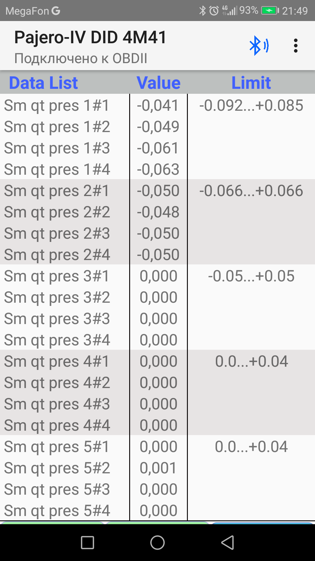 Скорей всего проблема с ЕЛМ адаптером. У меня так же китайское ГУ, все параметры считываются корректно, в том числе и давление.shurik58 писал(а): ↑05 мар 2019, 10:31 Всем ДВС.