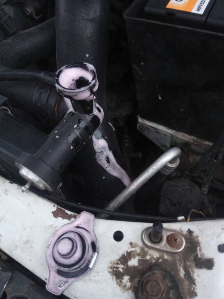 проверил после остывания - жижа никуда не ушла. попробовал открыть крышку радиатора - начало булькать в расширительный и туда еще больше выдавило жижы. Что сделать для временного фикса? перелить из бачка в крышку радиатора? при работе двигателя можно крышку радиатора открывать?
