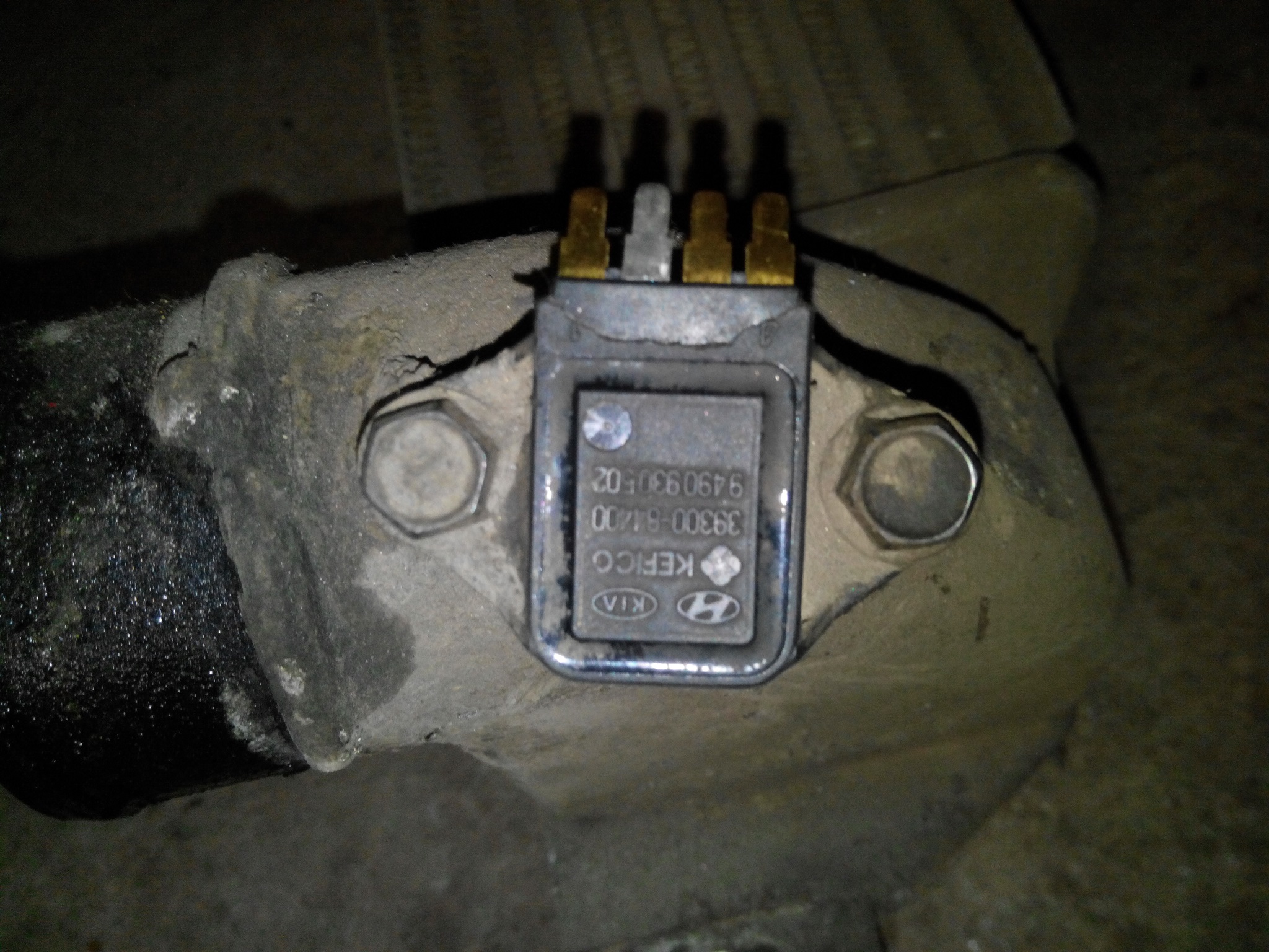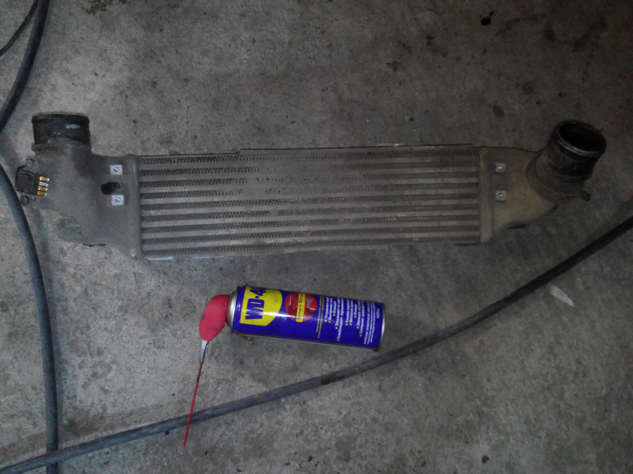 Кулер с киа соренто 2,5 дизель. Банка ВД-40 для сравнения большая, емкостью 450. В толщину кулер толще нашего почти в 2 раза. И датчик стоит на нем какой-то. Ножки, на которых он крепился помимо болтов отломаны.