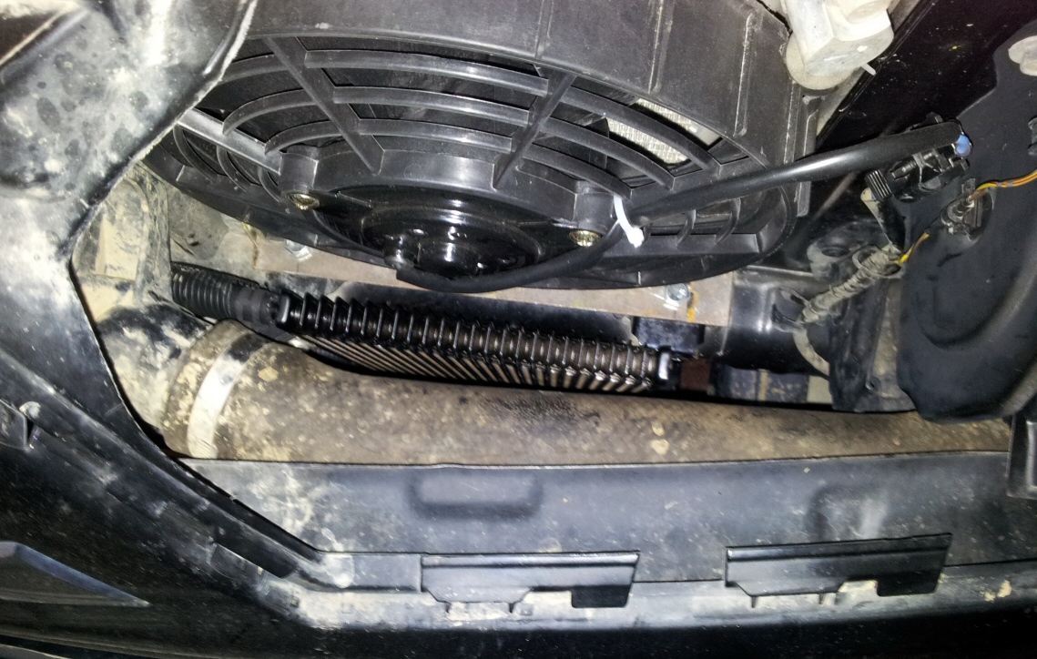 вид спереди Вид снизу Термостат закрепил на кронштейне чуть ниже интеркулера.
