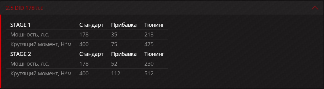 - Двигатель:: Дизель 2.5, 178 л.с.