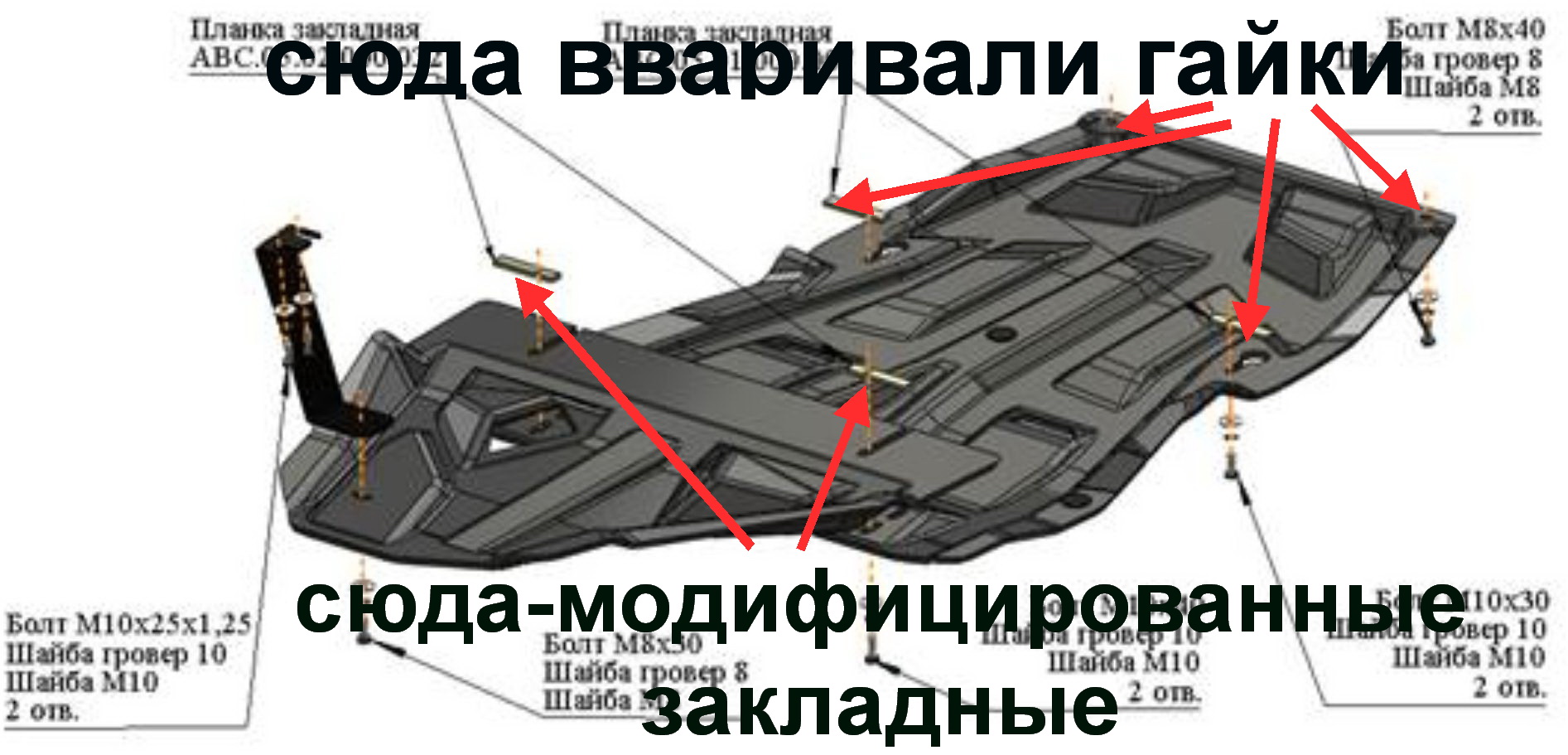Точно, закладные задерут, если ои не "оттюнить" по полной. Делают их из какой-то сыромятины, даже при умеренной затяжке их гнет, а потом при выкручивании болта деформированная резьба закладной "слижет" резьбу болта: Думали сделать закладные из чего-нибудь путного (куска рессоры, например) но поступили вот так: и вот так: Теперь все супергутDVostok писал(а):...есть пару мысликов по закладным...