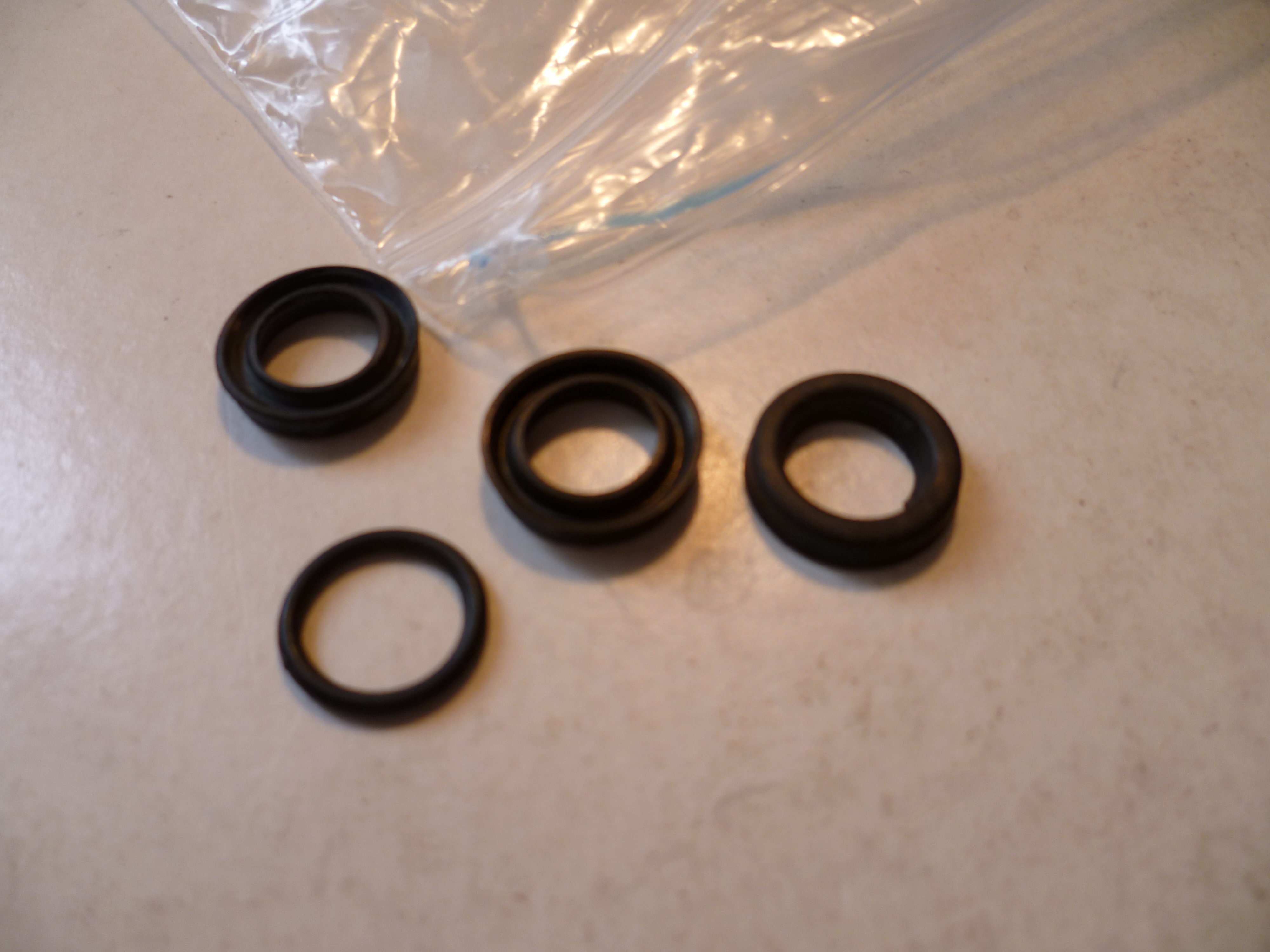 Вот картинка с вроде как новой манжетой и втулкой. Отчетливо видно что манжета не прямоугольных форм выходит каких-то, а словно и конусная какая-то. Справа остатки старой.