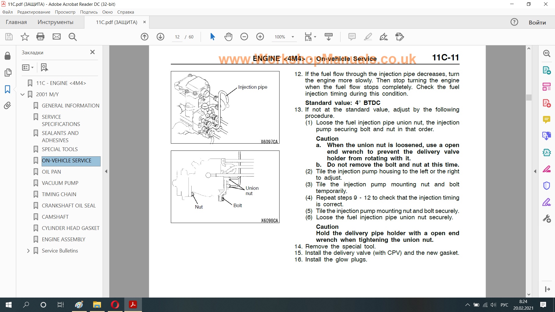 В мануале даже описан процесс установки насоса на угол 4 градуса до ВМТ. Я же писал, что насос не родной, кто и как ставил неизвестно. Чисто теоретически могли поставить 2 градуса.