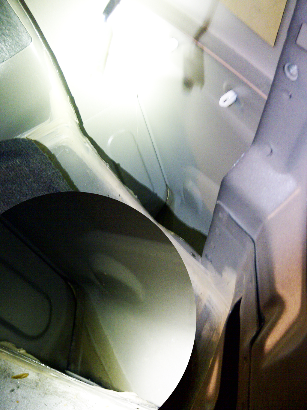 Всем привет. Продолжаю запариваться шумкой. Разобрал половину зада салона, и в нише у крыльев, с обеих сторон обнаружил значительное количество влаги в перемешку с остатками песка, т.е воды как таковой нет, а вот типа жижи в самом низу че-то есть.