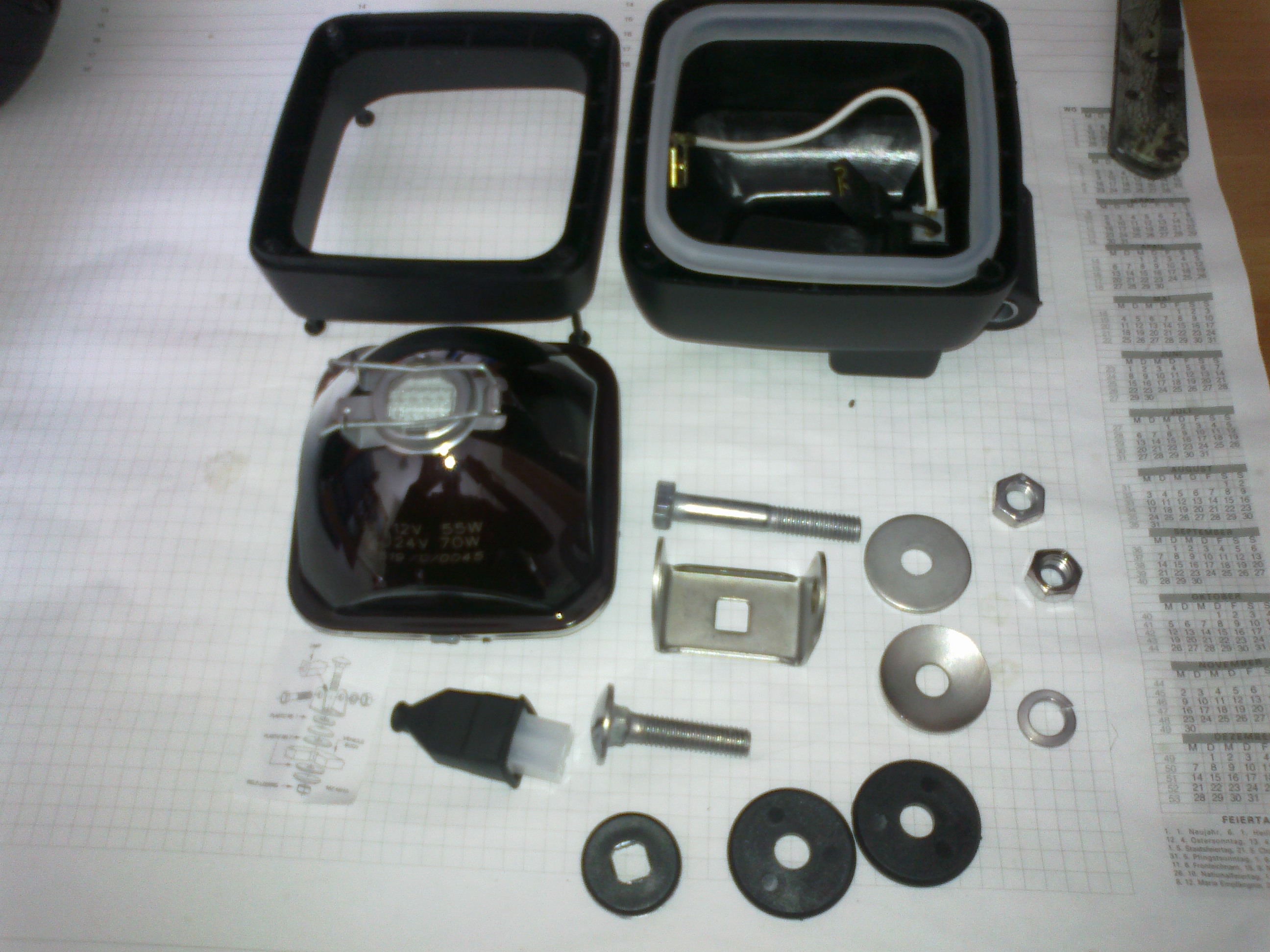 2. Цоколь не как у родной. Поставил б/у, что первое у знакомого в гараже попалось под руку. Какой точно цоколь не помню. Лампа посажена на жидкий пластик. Ничего не переделывал.