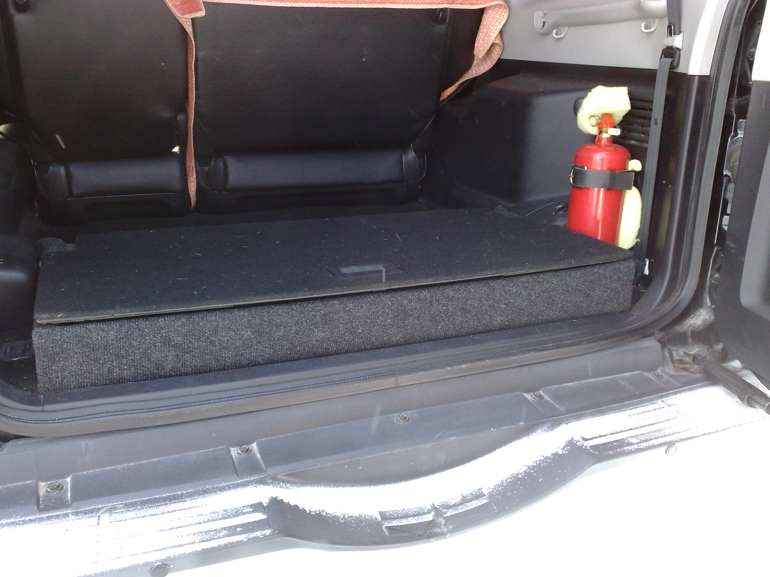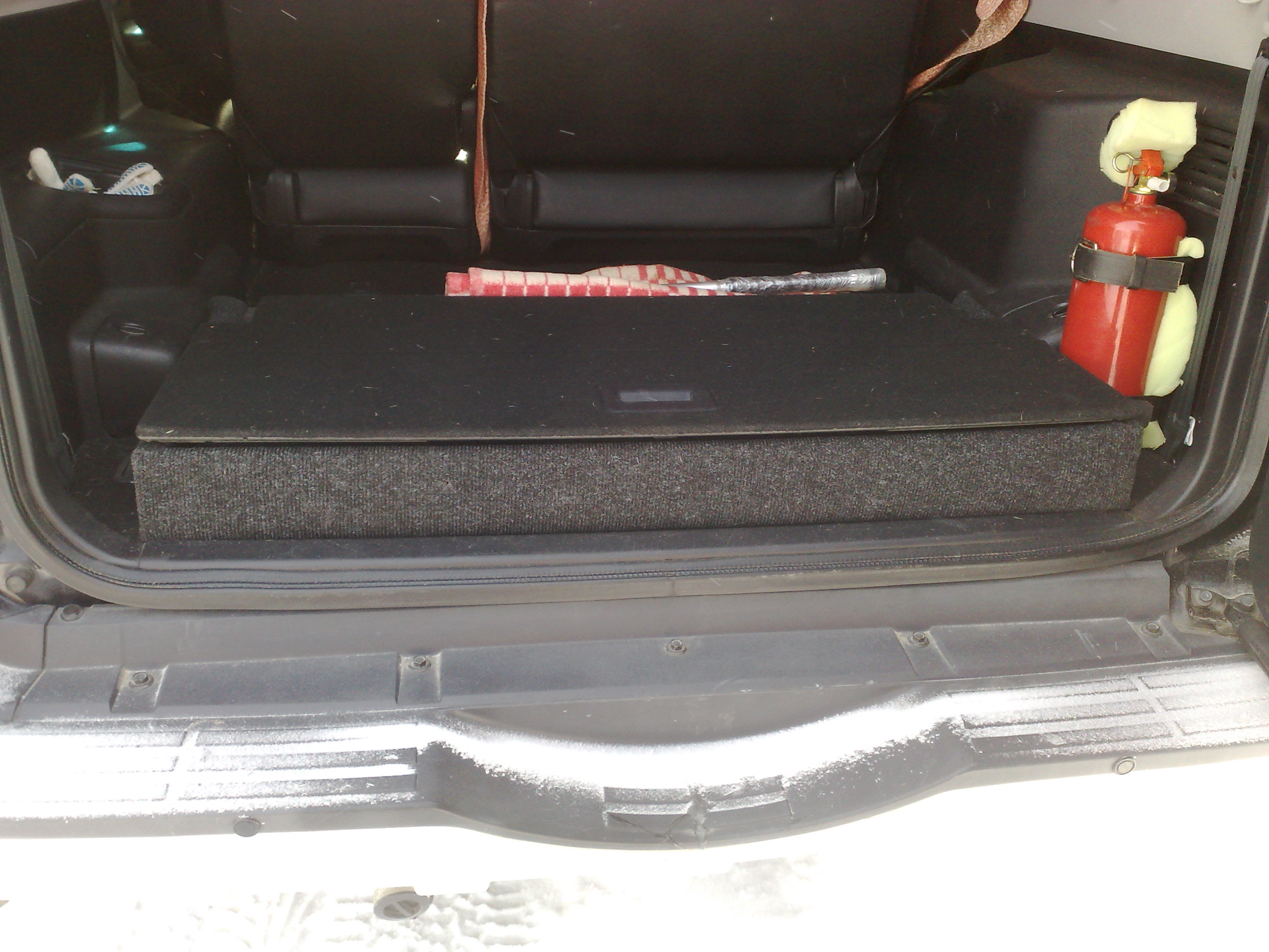 я так понял - крышка подиума, это штатная крышка третьего ряда сидений, а боковины сами делали - или в сервисе сразу и поставили в качестве доп услуги.